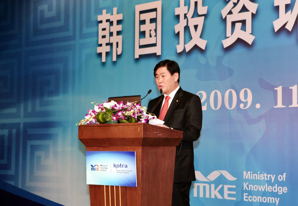 Minister of Knowledge Economy Choi Kyunghwan addresses nearly 200 Chinese investors at a meeting in Beijing on November 23. Minister Choi urged participants to invest in Korea’s promising regional development projects. date2009-11-25