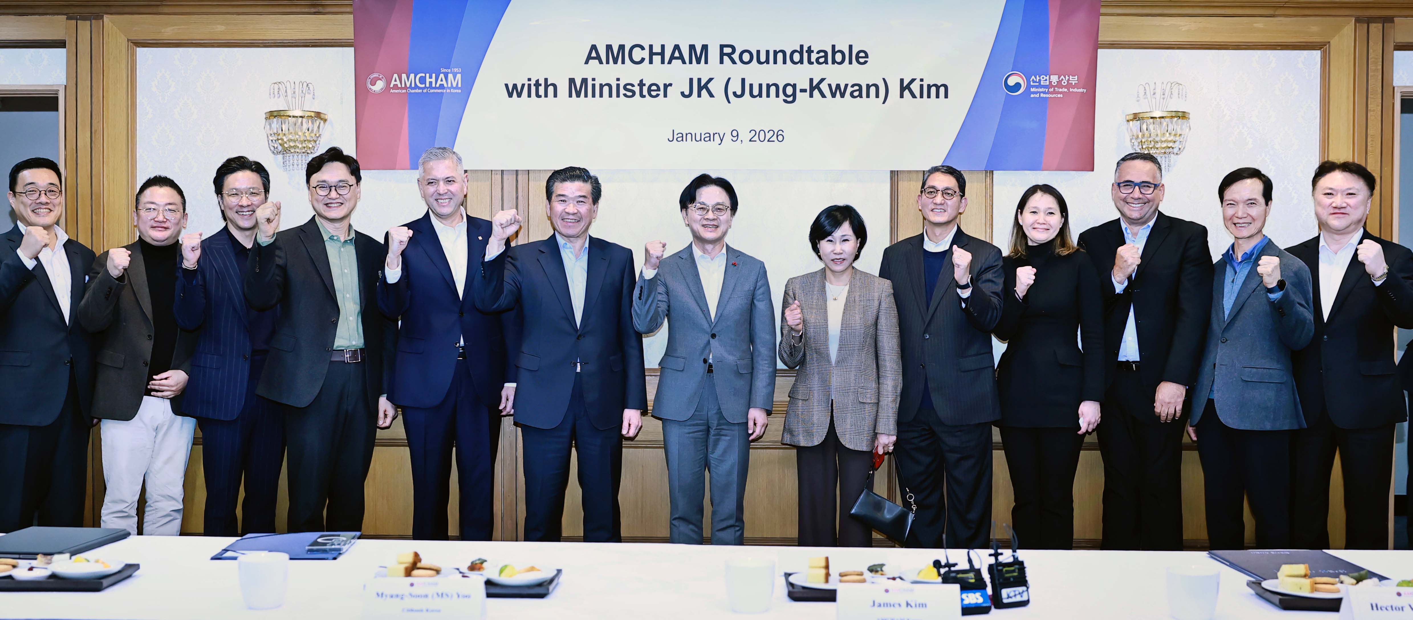 JK (Jung-Kwan) Kim, Minister of Trade, Industry and Resources (MOTIR), attended a roundtable with members of the American Chamber of Commerce in Korea (AMCHAM), including James Kim, Chairman and CEO of AMCHAM, and representatives of major U.S. companies operating in Korea, at the Mugunghwa Hall of the Government Complex Seoul on January 9, 2026. Held at AMCHAM’s request, the meeting focused on gathering feedback and hearing about challenges faced by U.S. companies investing in Korea, as well as strengthening communication to support their investment activities. Minister Kim stated, “We will work to reflect feedback from AMCHAM member companies in our policies, while continuing to create a more predictable and stable investment environment for foreign-invested companies.” date2026-01-12