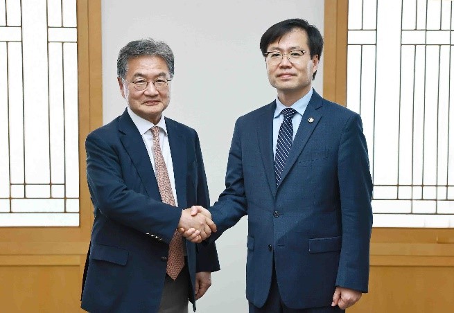 Minister for Trade Yeo Han-koo met AMCHAM Korea Chairman and CEO James Kim on June 19 in Seoul to discuss Korea-U.S. trade issues. date2025-06-23