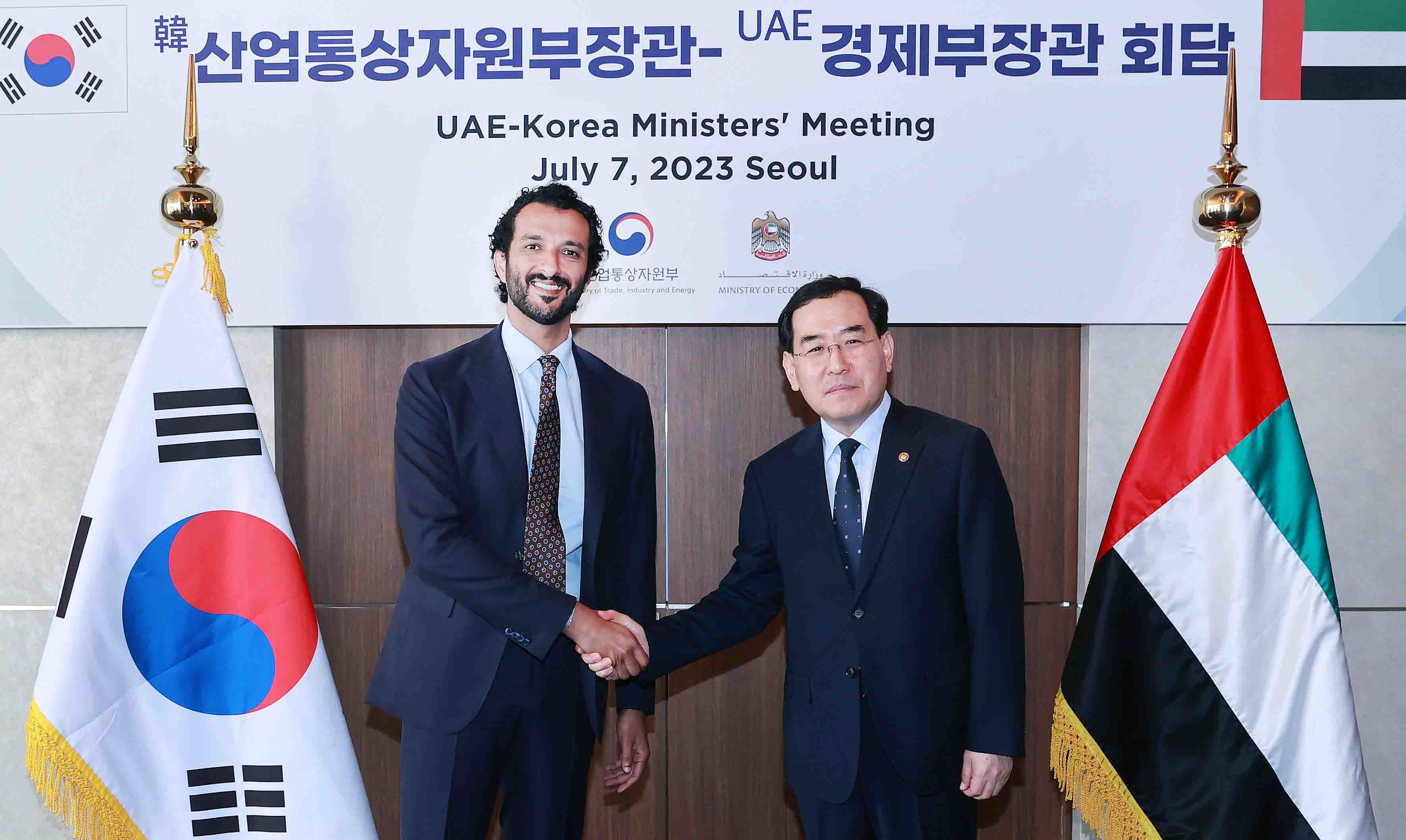 Trade, Industry and Energy Minister Lee Chang-yang of the Republic of Korea met with United Arab Emirates (UAE)’ Economy Minister Abdulla Bin Touq Al Marri on July 7 on the occasion of the latter’s visit to Korea and exchanged views on the January bilateral summit outcomes and future economic cooperation in trade, investment, advanced industries, technology and energy. During the talks, the two ministers assessed that the 48 agreements and memorandums of understanding (MOUs) to date2023-07-13