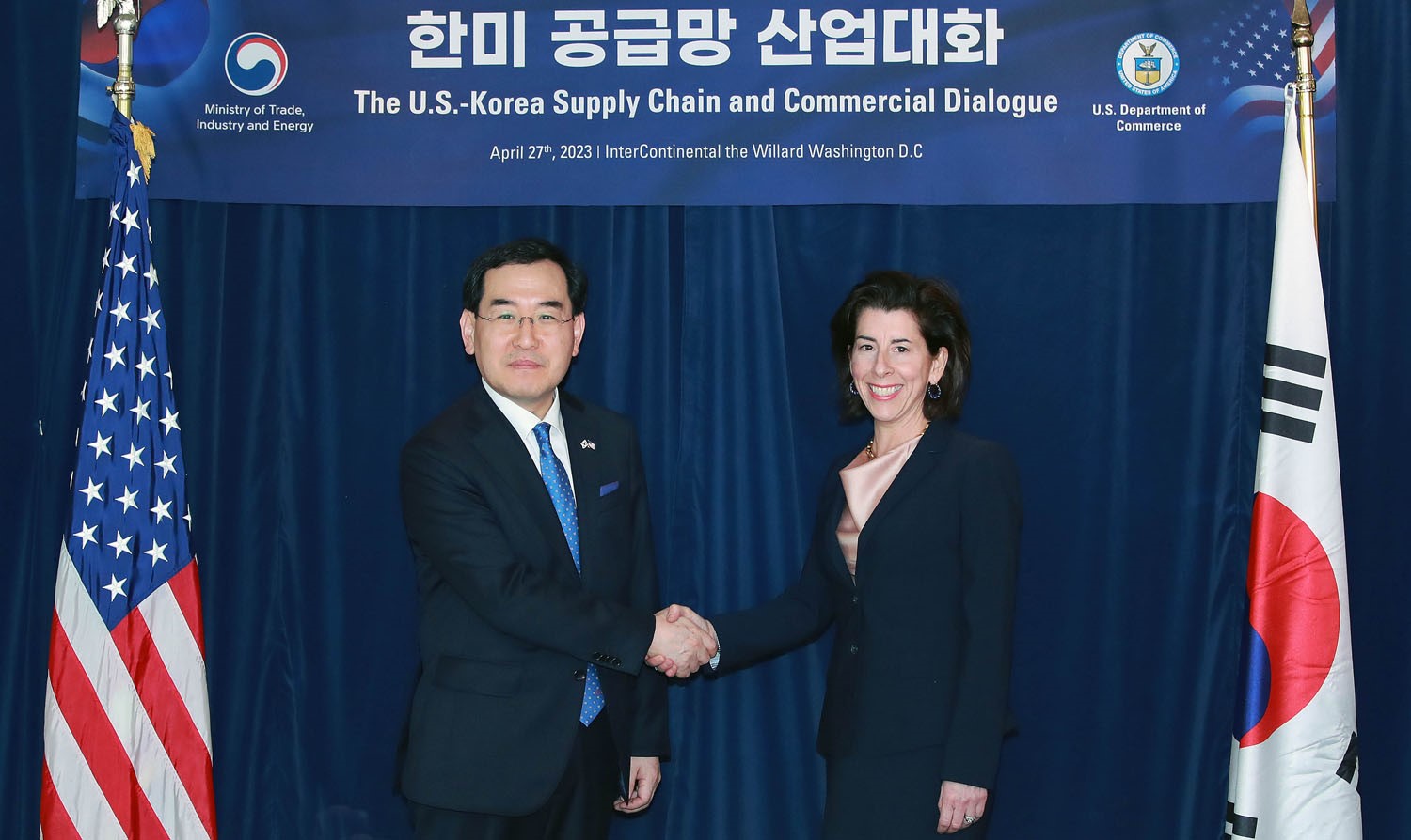 Minister of Trade, Industry and Energy Lee Chang-yang and United States Secretary of Commerce Gina Raimondo held the first Korea-U.S. Supply Chain and Commercial Dialogue (“SCCD”) on April 27 in Washington DC and issued a joint statement. The joint statement is as below. United States Secretary of Commerce Gina Raimondo and Republic of Korea Minister of Trade, Industry, and Energy Chang-Yang Lee ('the Participants') signed a Memorandum of Understanding to launch the United date2023-05-02