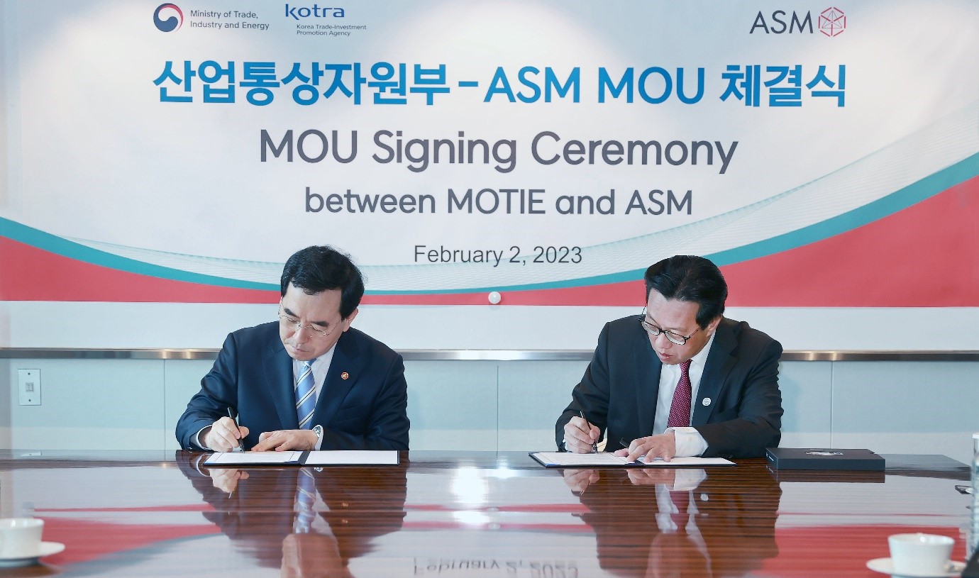 Trade, Industry and Energy Minister Lee Chang-yang, on February 2, signed an investment cooperation memorandum of understanding (MOU) with Benjamin Loh, the CEO of ASM International, a world-leading Dutch headquartered multinational corporation specializing in design and manufacturing of atomic layer deposition (ALD) and semiconductor wafer processing equipment. ASM will decide by this year whether to expand the R&D center and build a second ALD plant in Korea that will utilize new processe date2023-02-03