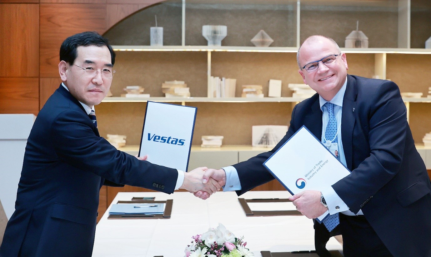 The Ministry of Trade, Industry and Energy (MOTIE) announced on January 18 the decision of world-leading Danish wind turbine manufacturer Vestas to invest USD 300 million in South Korea, to which the company is positively considering moving its Asia-Pacific regional headquarters to South Korea. An investment deal ceremony was held in Davos, Switzerland, to mark the decision. With the $300 million investment, Vestas plans to build a large-scale wind turbine plant in Korea for producing core equ date2023-01-20