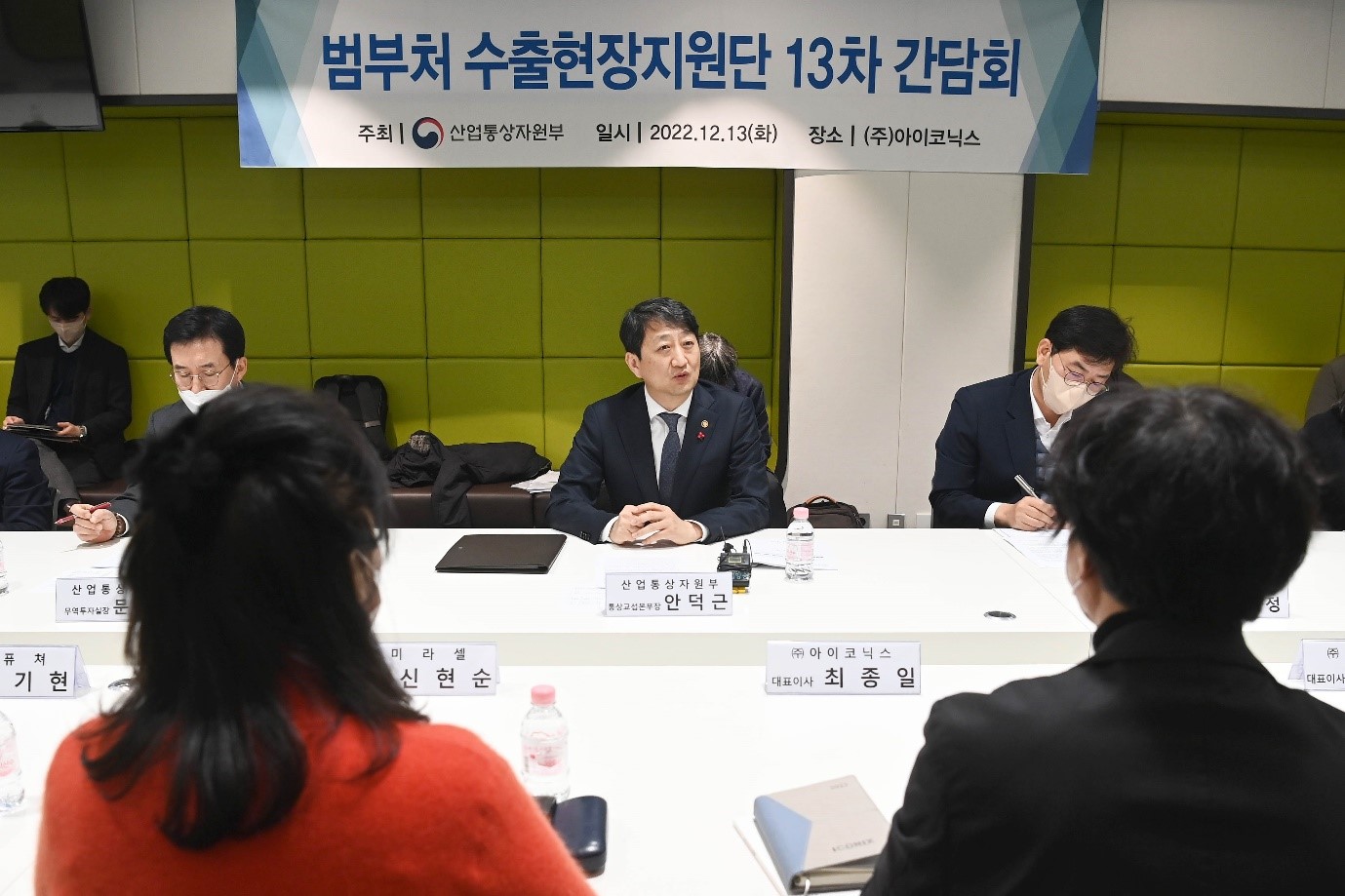 Minister for Trade Dukgeun Ahn led the pan-ministerial exports support group on December 13 to ICONIX in Pangyo to inspect site operations and held the 13th exporters' on-site conference. The exports support group was launched following the first exports strategy meeting presided by President Yoon Suk-yeol on November 23, and the group participation has been widened to all major ministries. Trade Minister Ahn congratulated the company ICONIX for winning this year’s “USD 10 million date2022-12-14