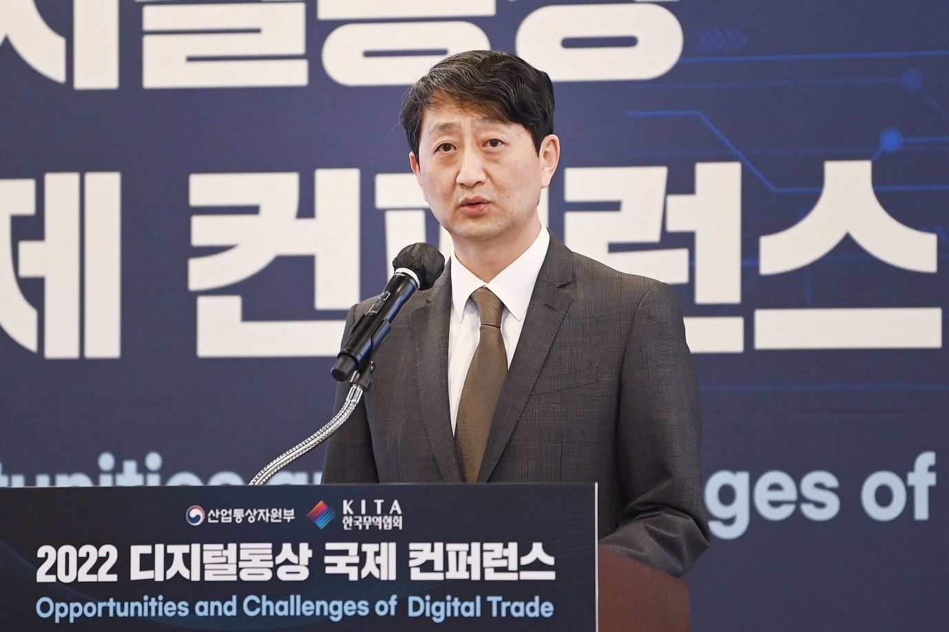 Minister for Trade Dukgeun Ahn attended the Digital Trade International Conference 2022 on December 12 at COEX in Seoul, held for sharing international trade regulation issues and rapid changes in the trade environment from digital transition, in order to seek opportunities and meet challenges. The Trade Minister gave a keynote speech on how “digital trade is a critical agenda for Korean industries’ future competitiveness,” and stated that proactive digital trade polic date2022-12-13