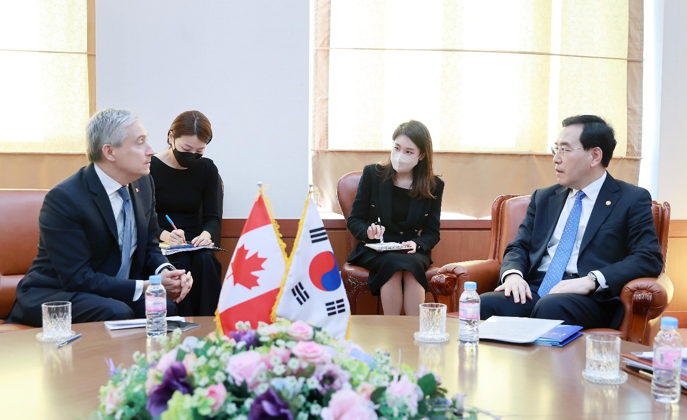 Trade, Industry and Energy Minister Lee Chang-yang held talks with Canada’s Minister of Innovation, Science and Industry François-Philippe Champagne on November 25 at the Government Complex Seoul on core industries cooperation, trade and investment expansion measures, and requested support for World EXPO 2030 Busan. date2022-11-28