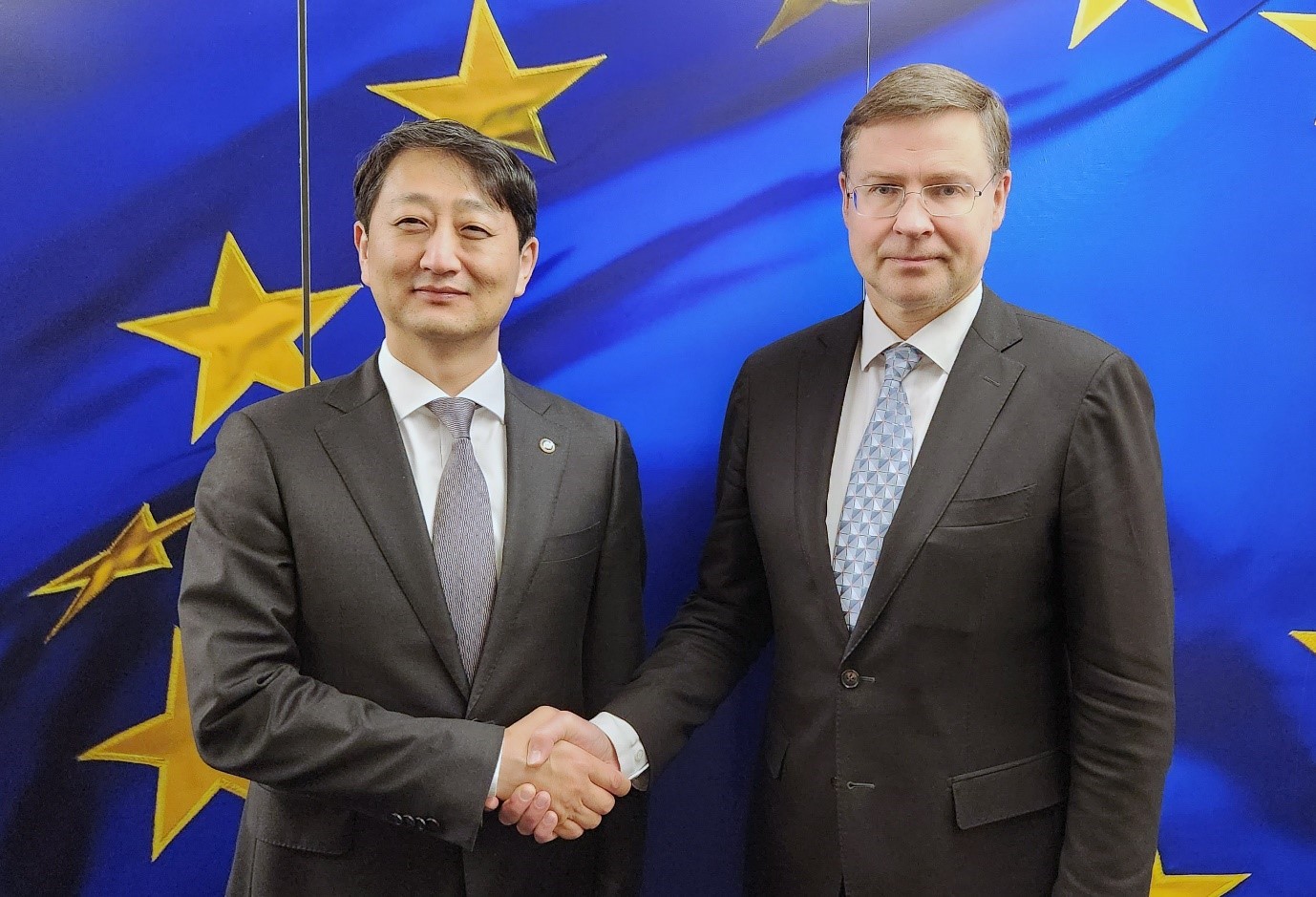 Minister for Trade Dukgeun Ahn met with European Commissioner for Trade Valdis Dombrovskis on November 30 in Brussels, Belgium, to hold ministerial talks and the 10th Korea-EU FTA Trade Commission (hereinafter 'Commission') meeting. In Korea-EU ministerial talks, the two sides exchanged views on the U.S.’ Inflation Reduction Act (IRA) and WTO reform among other major global trade issues. As both sides have serious concerns over IRA’s discriminatory rules on EV tax credits, and prop date2022-12-02