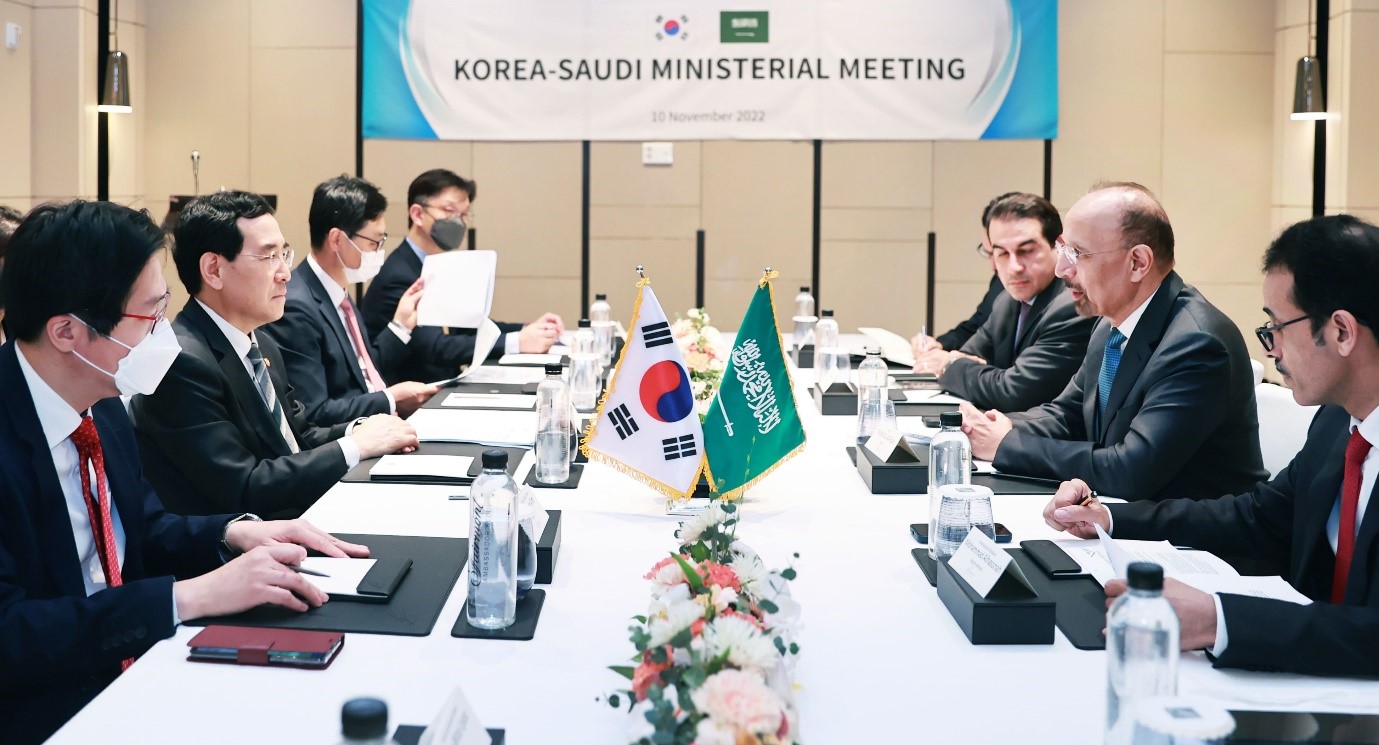 Trade, Industry and Energy Minister Lee Chang-yang met with Saudi Arabia’s Investment Minister Khalid Al-Falih on November 10 on the occasion of the latter’s visit to South Korea, to discuss investment and economic cooperation expansion measures. The Ministers concurred that the Korea-Saudi Vision 2030 Committee has contributed greatly to the two countries’ industrial diversification and economic cooperation, such as laying Saudi’s shipbuilding industry foundations, bols date2022-11-14