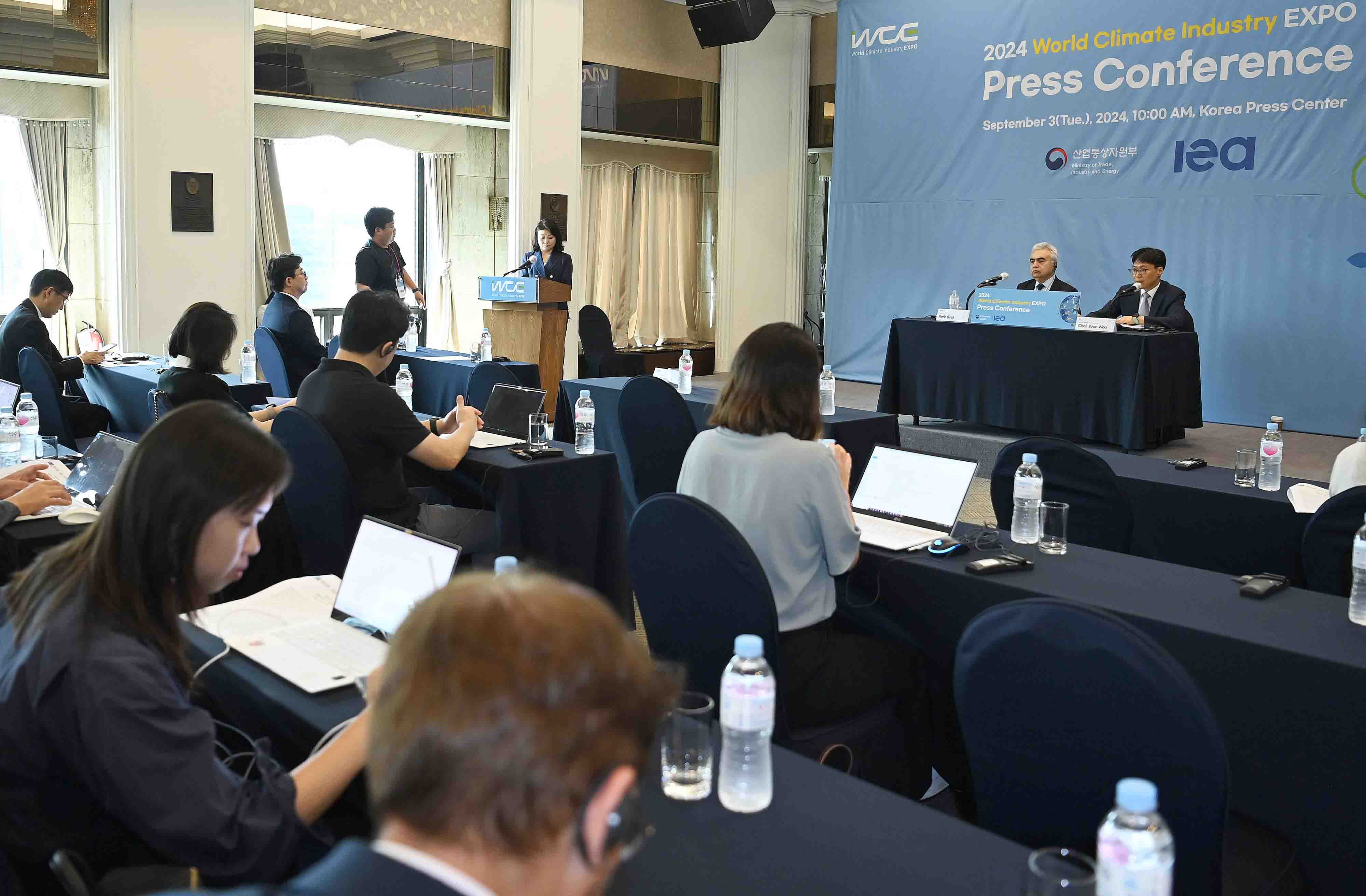 Director General for Energy Policy Choi Yeon-woo held a press conference with IEA Executive Director Fatih Birol on September 3 at the Korea Press Center in Seoul and announced the Korea-IEA joint statement on the occasion of their joint hosting of World Climate Industry Expo (WCE) in Busan. date2024-09-03
