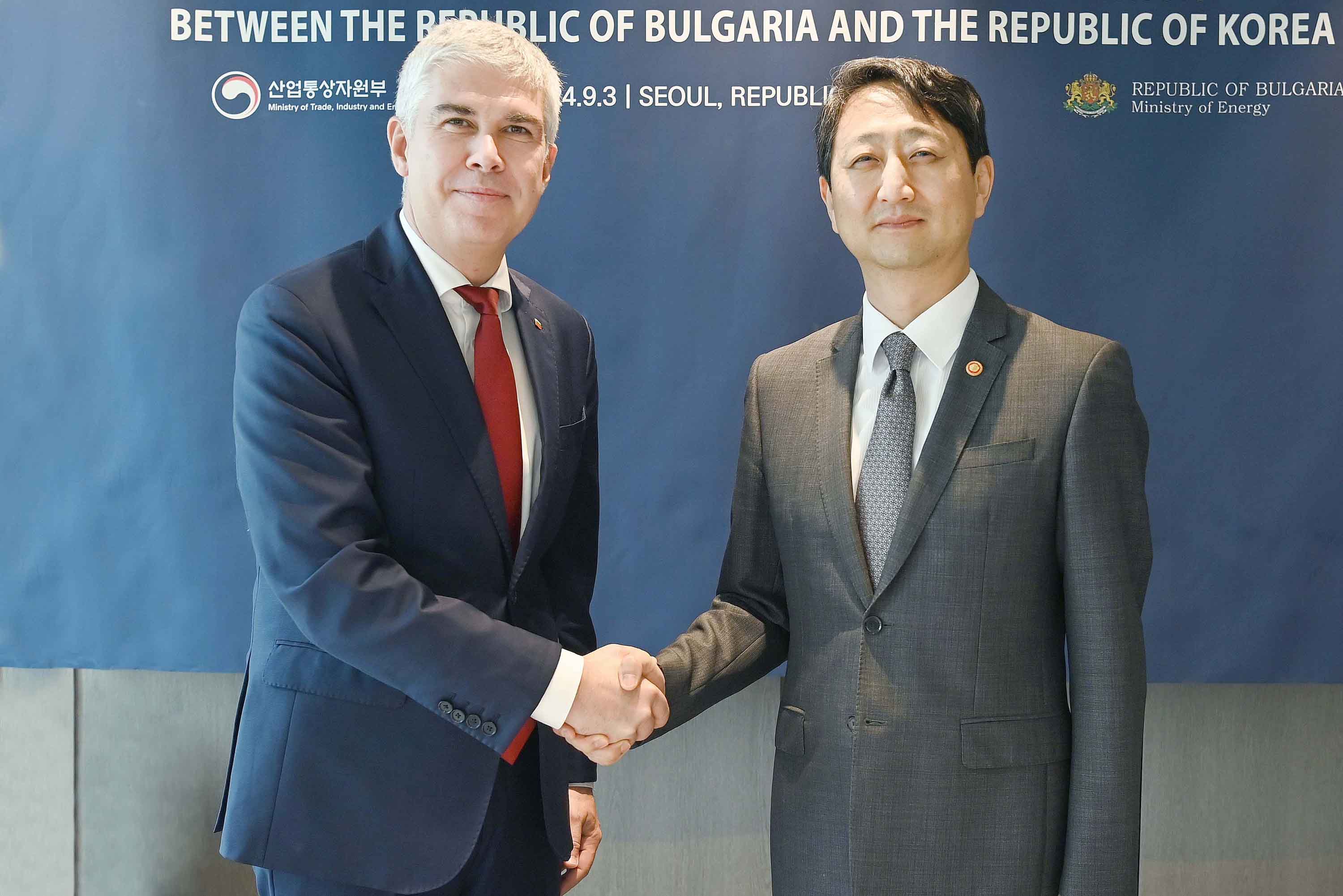 Korea’s Trade, Industry and Energy Minister Dukgeun Ahn met Bulgaria's caretaker Minister of Energy Vladimir Malinov today in Seoul to sign a memorandum of understanding (MOU) on energy cooperation and discuss measures for collaboration in nuclear power and other energy areas. They first acknowledged the importance of bilateral cooperation in strengthening energy security and expanding clean energy in view of frequent climate anomalies and persisting geopolitical uncertainties, such as the Middle East tensions and the Russia-Ukraine war. Minister Ahn highlighted that prospects for bilateral cooperation are high, as Bulgaria is actively harnessing clean energy sources like nuclear power (35 percent of power generation) and renewables (20 percent), while Korea is accelerating efforts to attain energy security and carbon neutrality based on carbon-free energy sources. He added that he looks forward to seeing today’s talks act as a catalyst for invigorating the Korea-Bulgaria energy collaboration. On the occasion of the talks, the two sides entered an energy cooperation MOU to enhance cooperation across areas of common interest. A wholly amended version of the energy cooperation MOU previously sealed in 2019, the fresh MOU extends the scope of bilateral cooperation by adding liquefied natural gas (LNG), energy storage, and supply chains to the existing areas of cooperation. In addition, it further specifies the areas of cooperation for nuclear energy, including nuclear new build, continued operation, decommissioning, radioactive waste management, small modular reactors (SMRs), and manpower training. Minister Ahn also introduced the Korean government’s Carbon Free Energy (CFE) Initiative, which aims for the effective achievement of carbon neutrality through the utilization of various carbon-free energy sources, and asked Bulgaria’s support and interest in its global diffusion. date2024-09-03
