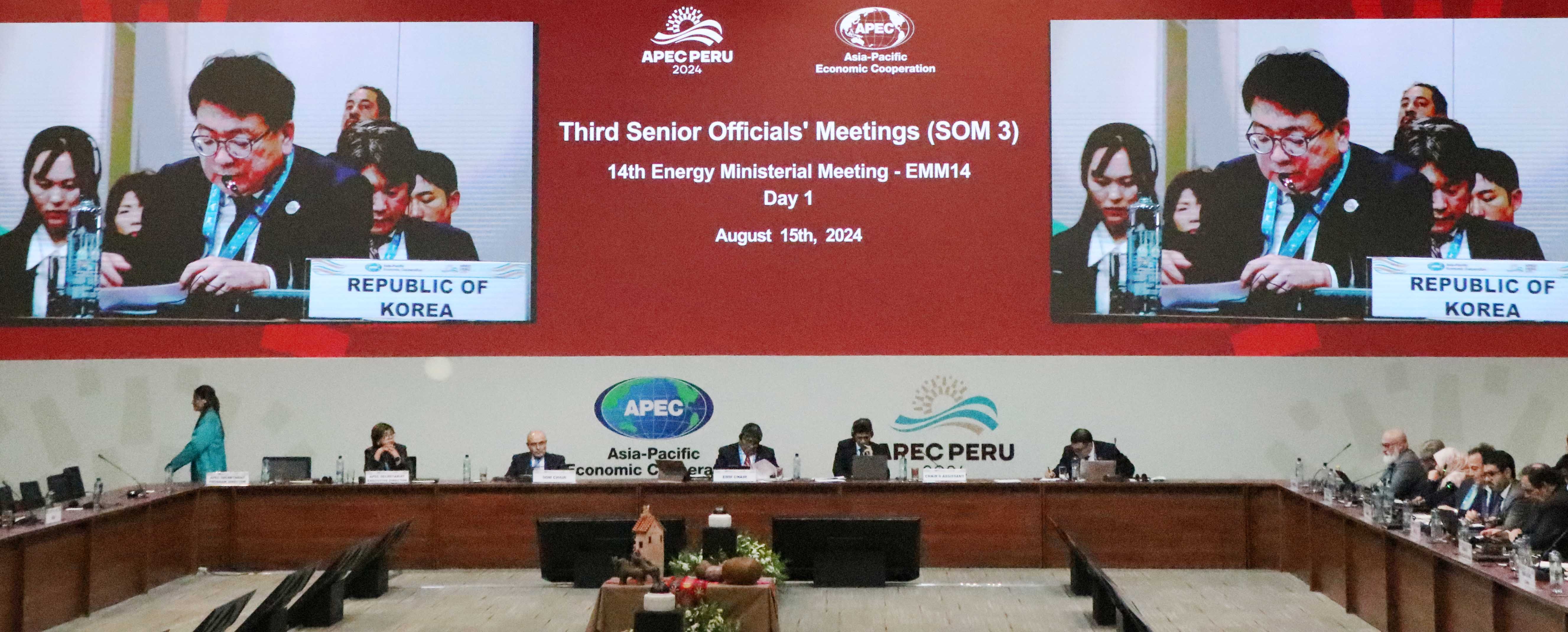 Trade, Industry and Energy Vice Minister Namho Choe attended the 14th Asia-Pacific Economic Cooperation (APEC) Energy Ministerial Meeting (EMM14) through August 15–16 in Lima, Peru, and engaged in discussions on expanding the use of clean energy and intraregional economic cooperation under the theme of “Sustainable Growth for Resilient Development.” He also took part in discussions on the topic of the importance of energy approaches that accelerate sustainable growth, held with the participation of 21 APEC member economies. date2024-08-16