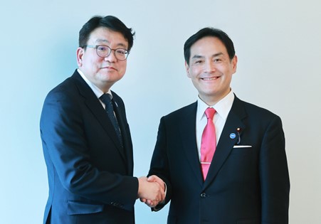 Trade, Industry and Energy Vice Minister Namho Choe met with Japan’s State Minister of Economy, Trade and Industry Kazuchika Iwata on February 13 in Paris on the occasion of the IEA Ministerial Meeting and discussed bilateral cooperation in energy areas, including carbon-free energy, hydrogen and ammonia and critical minerals. date2024-02-14