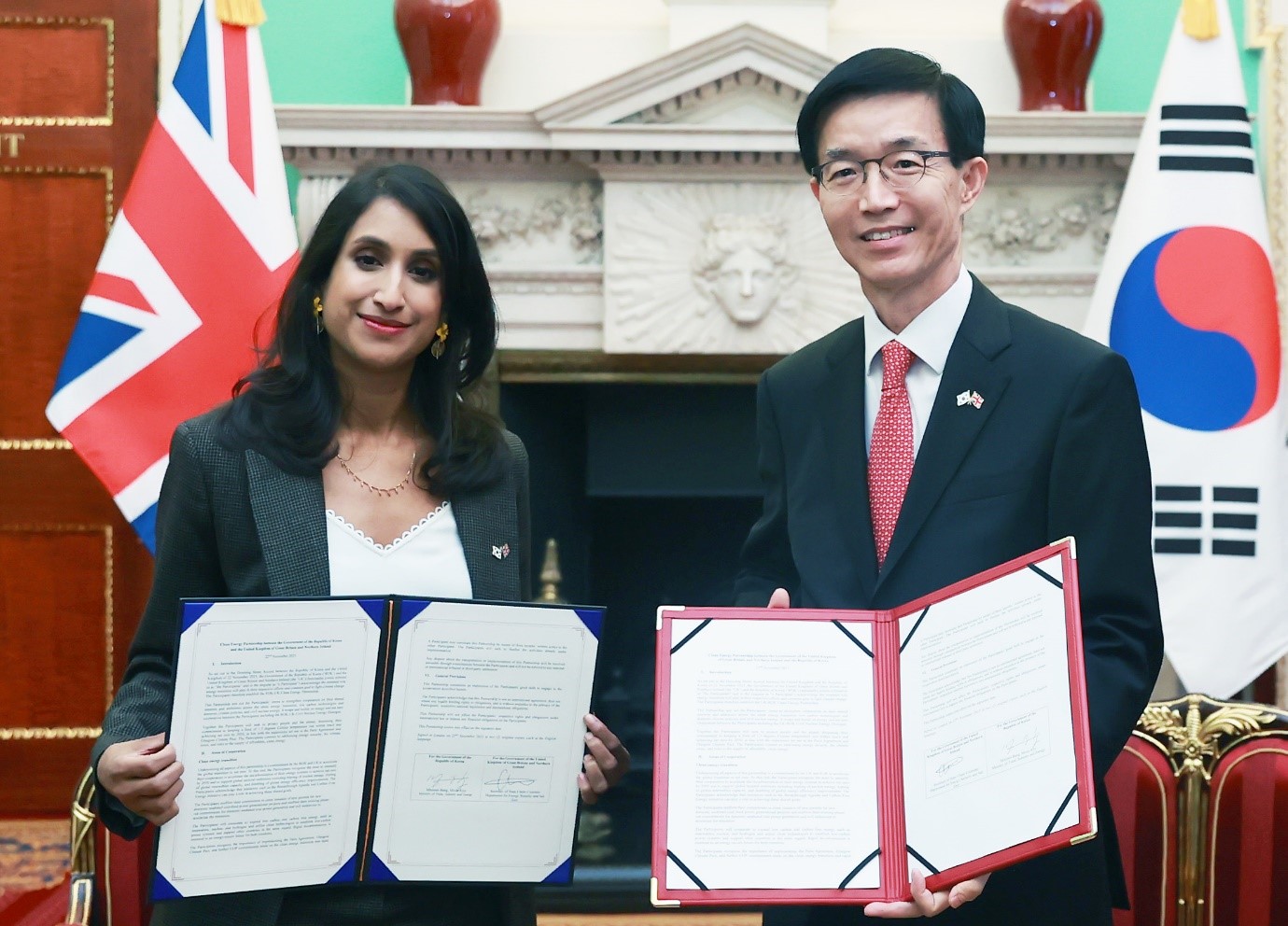 Minister Bang Moon Kyu attended the MOU signing ceremony for the ministry’s entering the Clean Energy Partnership with UK’s Department for Energy Security and Net Zero on November 22 in London with the Department’s Secretary of State Claire Coutinho for bilateral cooperation in clean energy, offshore wind power and nuclear power development. date2023-11-25
