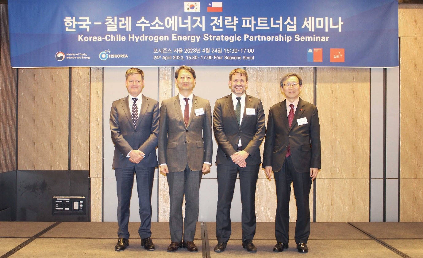 Trade Minister Dukgeun Ahn and Chilean Energy Minister Diego Pardow held the Korea-Chile Hydrogen Energy Strategic Partnership Seminar on April 24 at the Four Seasons Hotel Seoul to discuss hydrogen-related government policies and industry trends. date2023-05-01