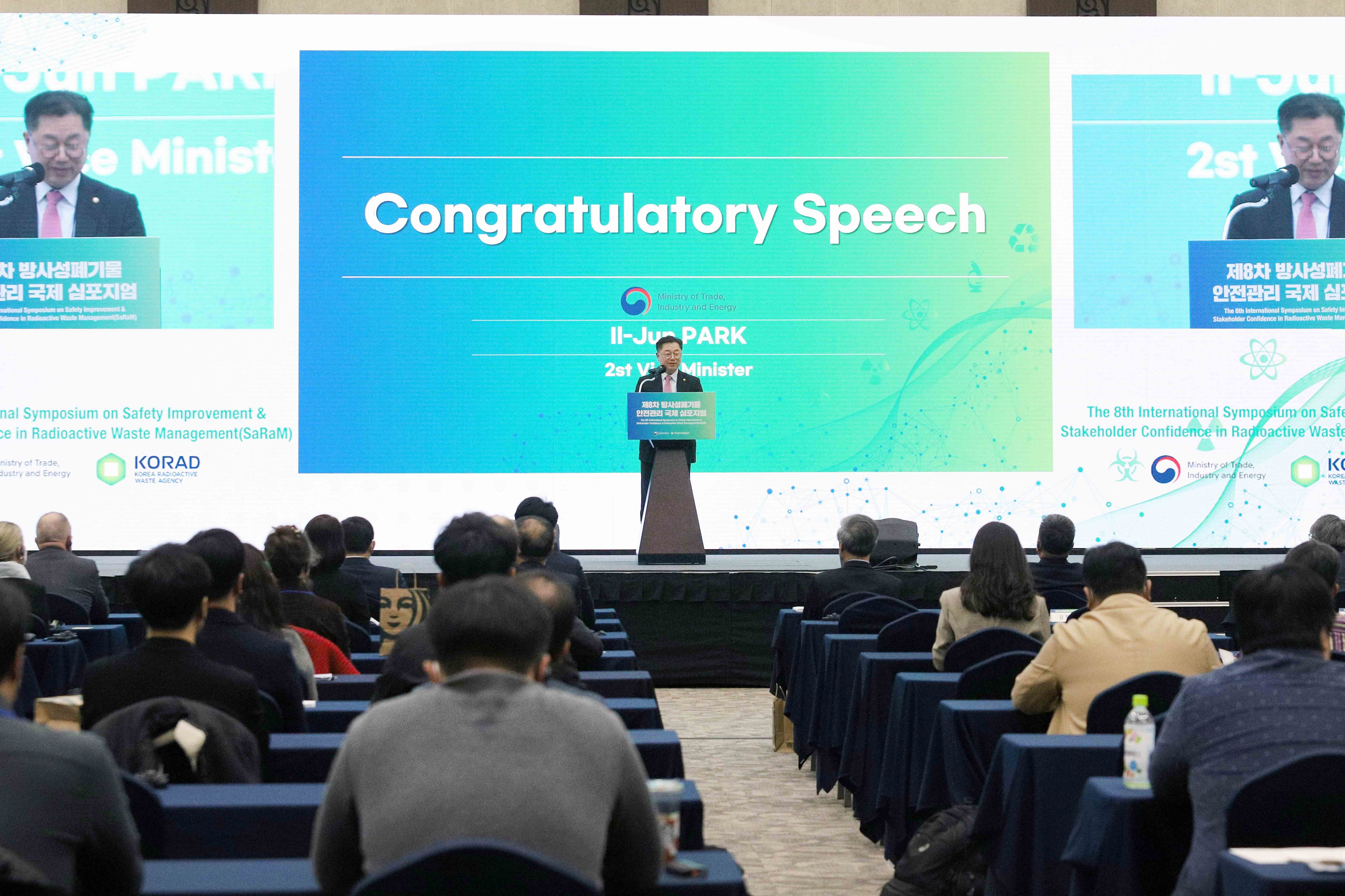 Trade, Industry and Energy 2nd Vice Minister Park Il-jun attended the '8th International Symposium on Safety Improvement & Stakeholder Confidence in Radioactive Waste Management' on November 10 in Gyeongju, held under the theme of “trust-building through policy implementation, technology and communication for safety management of high-level radioactive waste.” Vice Minister Park gave a congratulatory message and awarded governmental commendations (ministerial) to contrib date2022-11-14