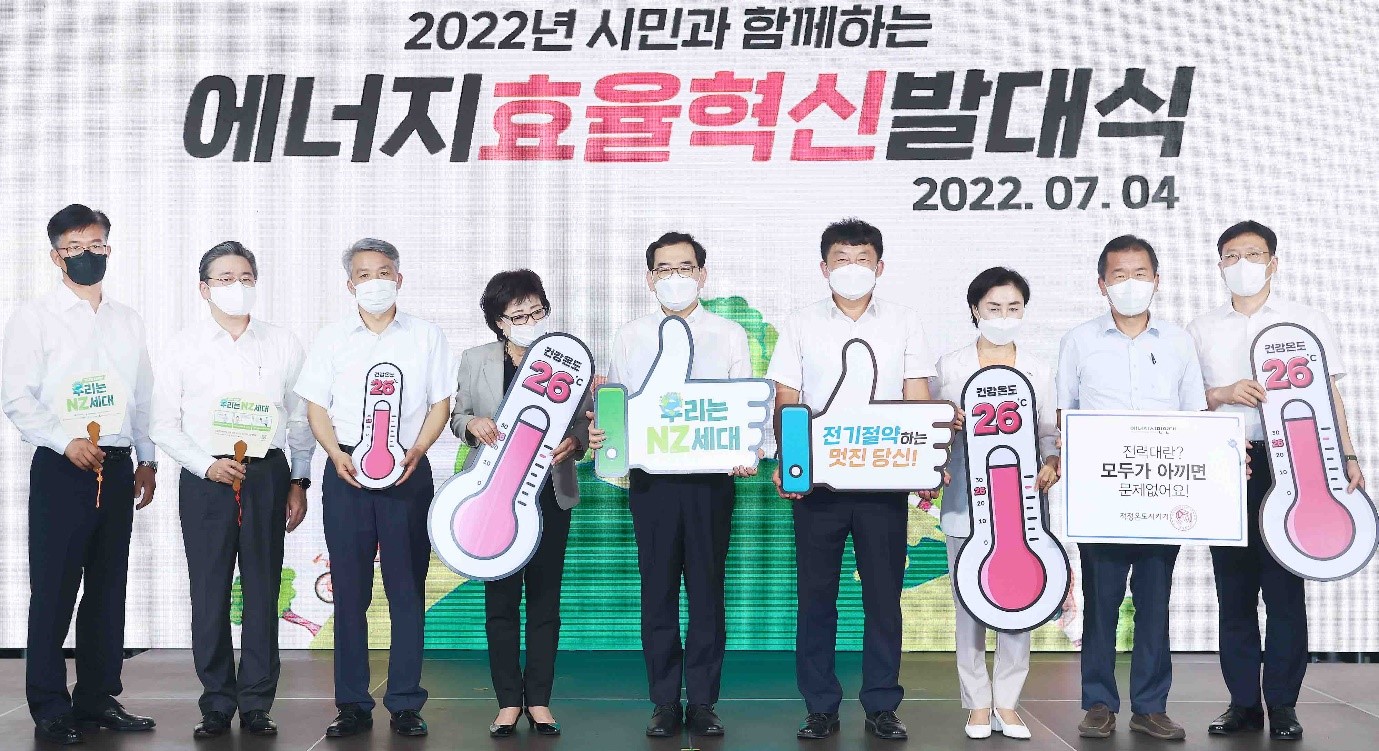 Trade, Industry and Energy Minister Lee Chang-yang attended the kick-off ceremony for “Energy Efficiency Innovation with Citizens 2022” at Seoul City Hall on July 4, which was held under the slogan, “Net-Zero (NZ) Generation, Caring for Earth.” Minister Lee delivered opening remarks and awarded “Energy Cashback” award certificates and plaques to households and apartments that succeeded in reaching energy reduction goals, followed by a signing ceremony date2022-07-05