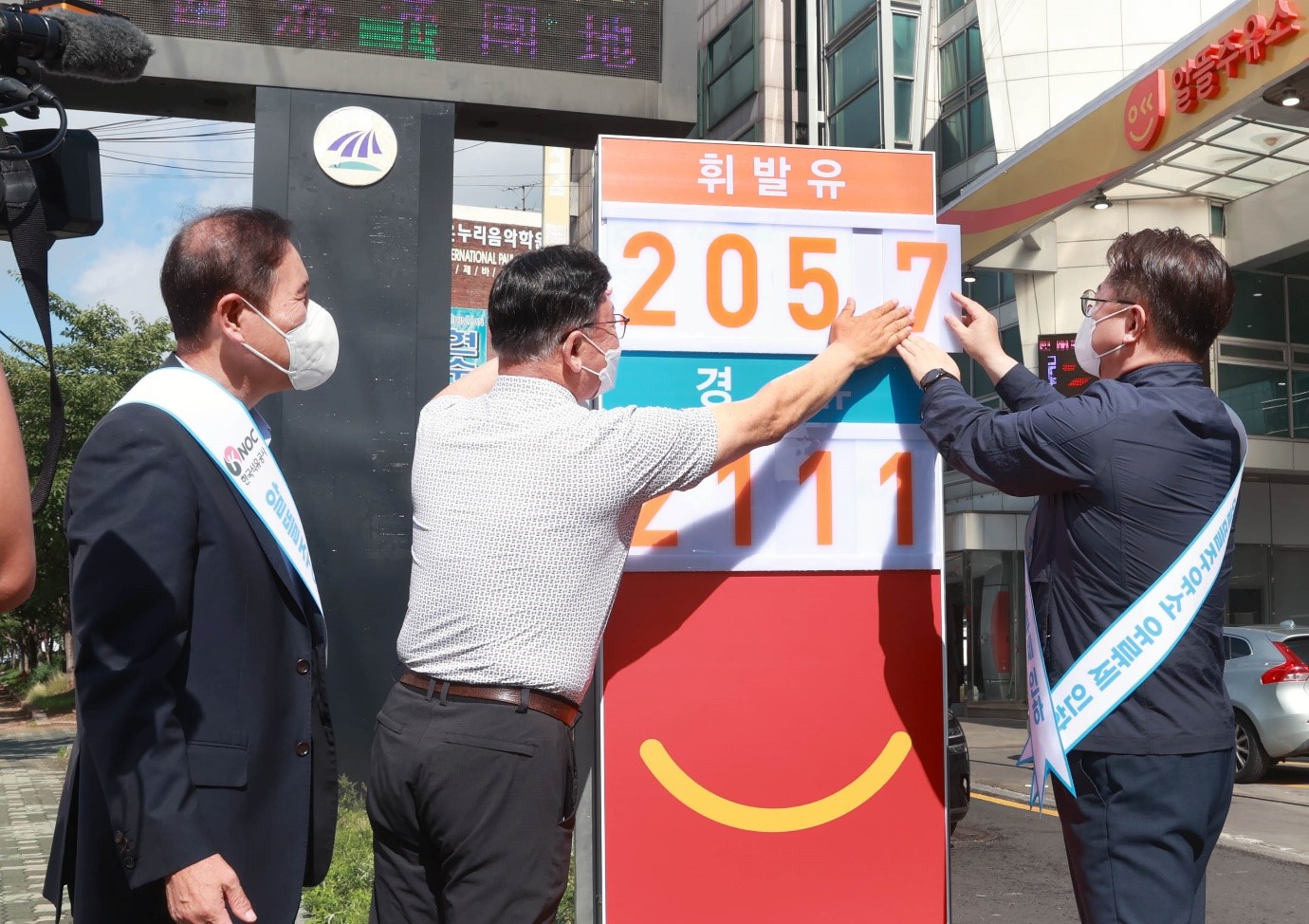Trade, Industry and Energy 2nd Vice Minister Park Il-jun visited the Altteul Gas Station located in Hwagok-dong, Gangseo-gu, Seoul on July 1, to encourage the station for having lowered their gas price immediately in accordance with recent additional oil tax cuts. The Vice Minister received a briefing on station operation status from the station CEO and watched the tanker truck unloading process, then changed the price board to indicate that oil tax cuts have been factored in. &nb date2022-07-04