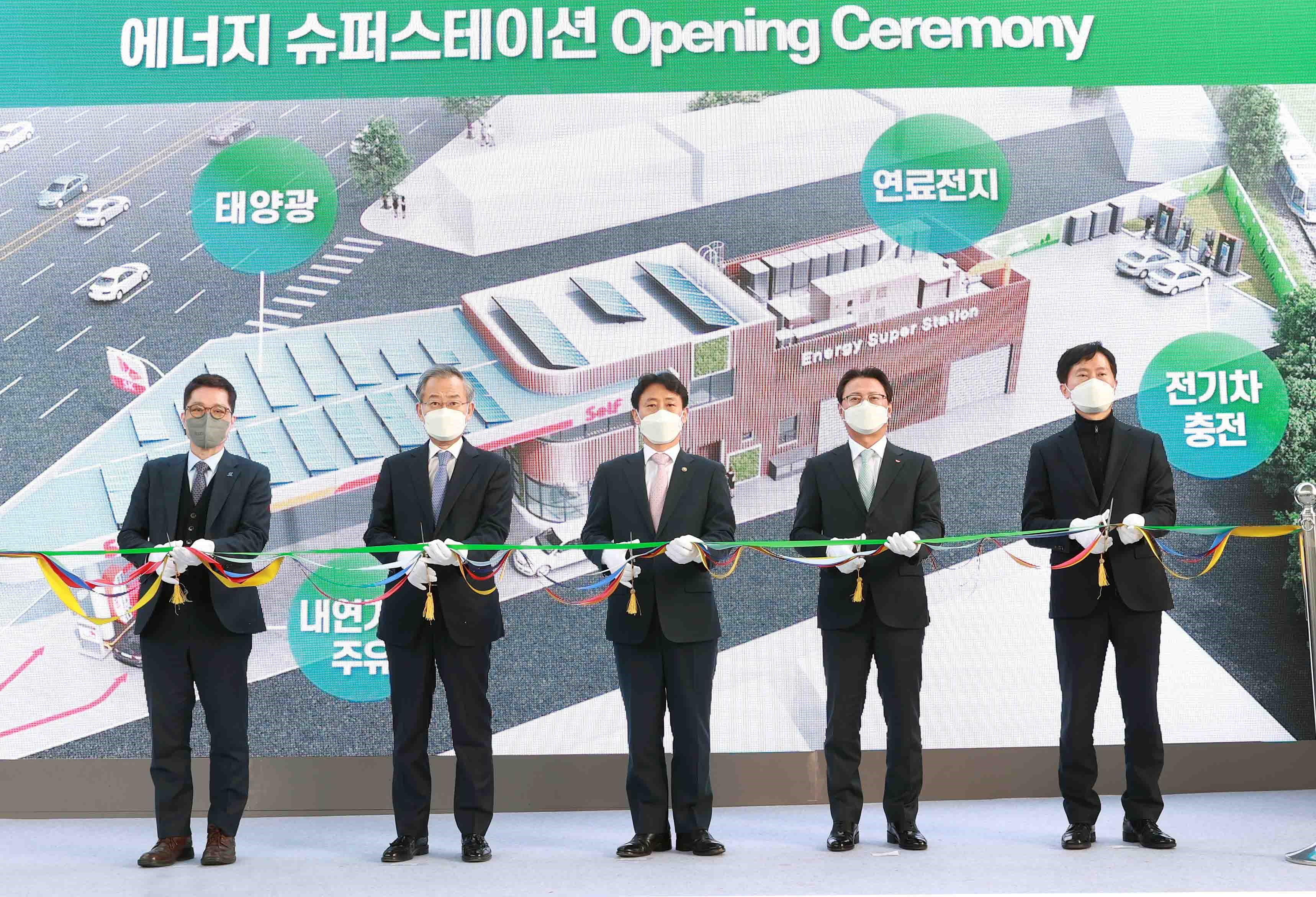 Energy Vice Minister Park Ki-young attended the opening ceremony of Korea’s first Energy Superstation on February 9, held at SK Bangmi Gas Station in Seoul. The Minister delivered a congratulatory message and partook in the ribbon cutting ceremony, which was followed by a tour around the fuel cell and EV charging facilities. The Energy Superstation is the nation’s first gas station to have been converted into a charging station for electric and hydrogen vehicles. This conver date2022-02-10