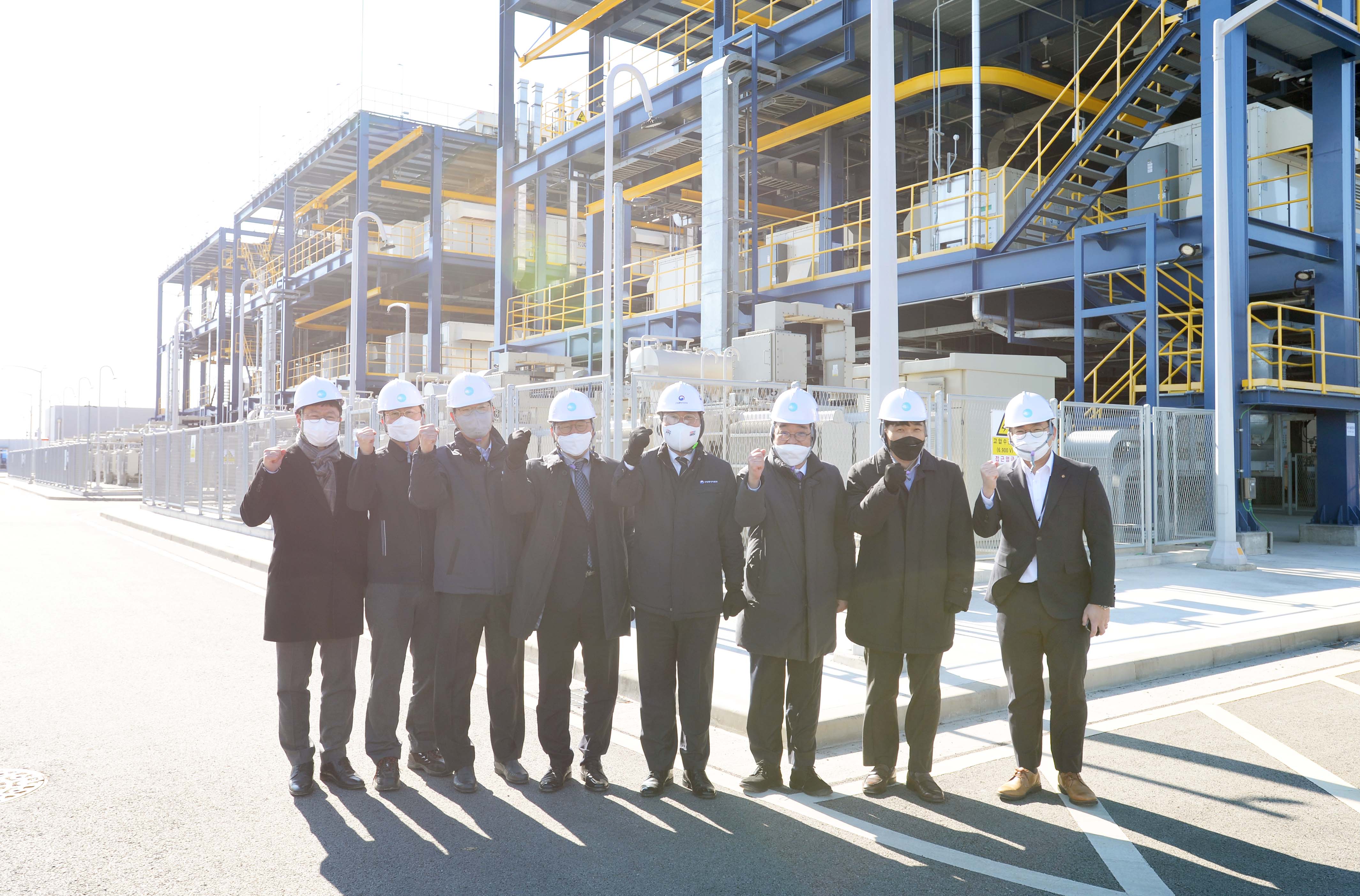 Trade, Industry and Energy Minister Sung Yunmo (fourth from the right) made an on-site visit to Daesan Green Energy, a local byproduct hydrogen fuel cell power plant located in Seosan, Chungnam, on February 8, to encourage the leading players working for Korea’s carbon neutral goal. Korea’s supply of hydrogen fuel cell power amounted to 605MW by the end of 2020, and the country has become the largest fuel cell power generation market, accounting for 43 percent of the total g date2021-02-08