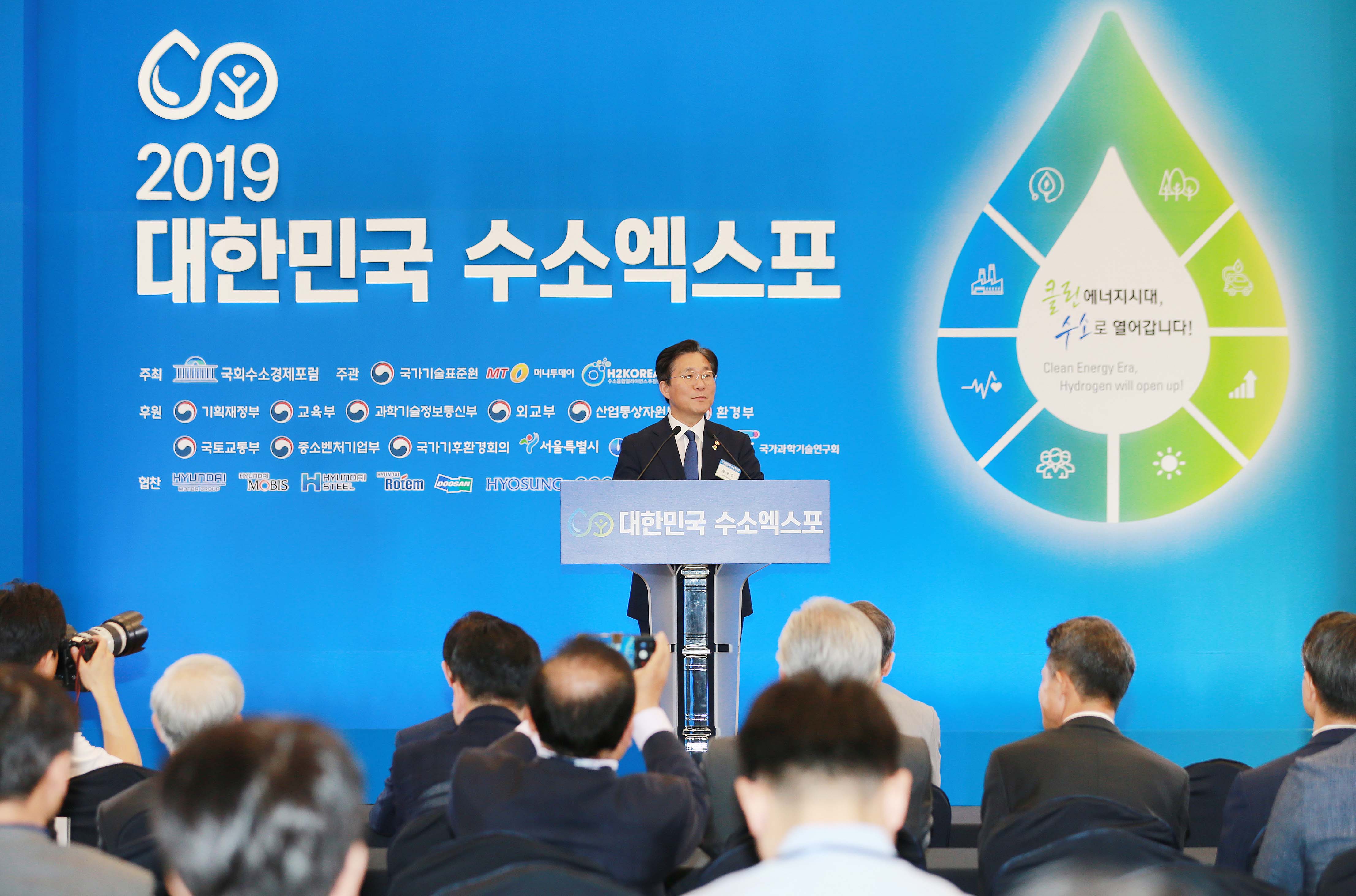 Trade, Industry and Energy Minister Sung Yun-mo delivered a keynote speech at the opening ceremony of the 2019 Korea Hydrogen Expo held in Dongdaemun Design Plaza, Seoul, on June 19.The opening event was attended by some 200 officials, including National Assembly Hydrogen Economy Forum Chairman Kim Young-choon, SMEs and Startups Minister Park Young-sun, Environment Minister Cho Myung-rae, and Seoul Mayor Park Won-soon.The country’s hydrogen showcase is scheduled to take place from June 19 date2019-06-19