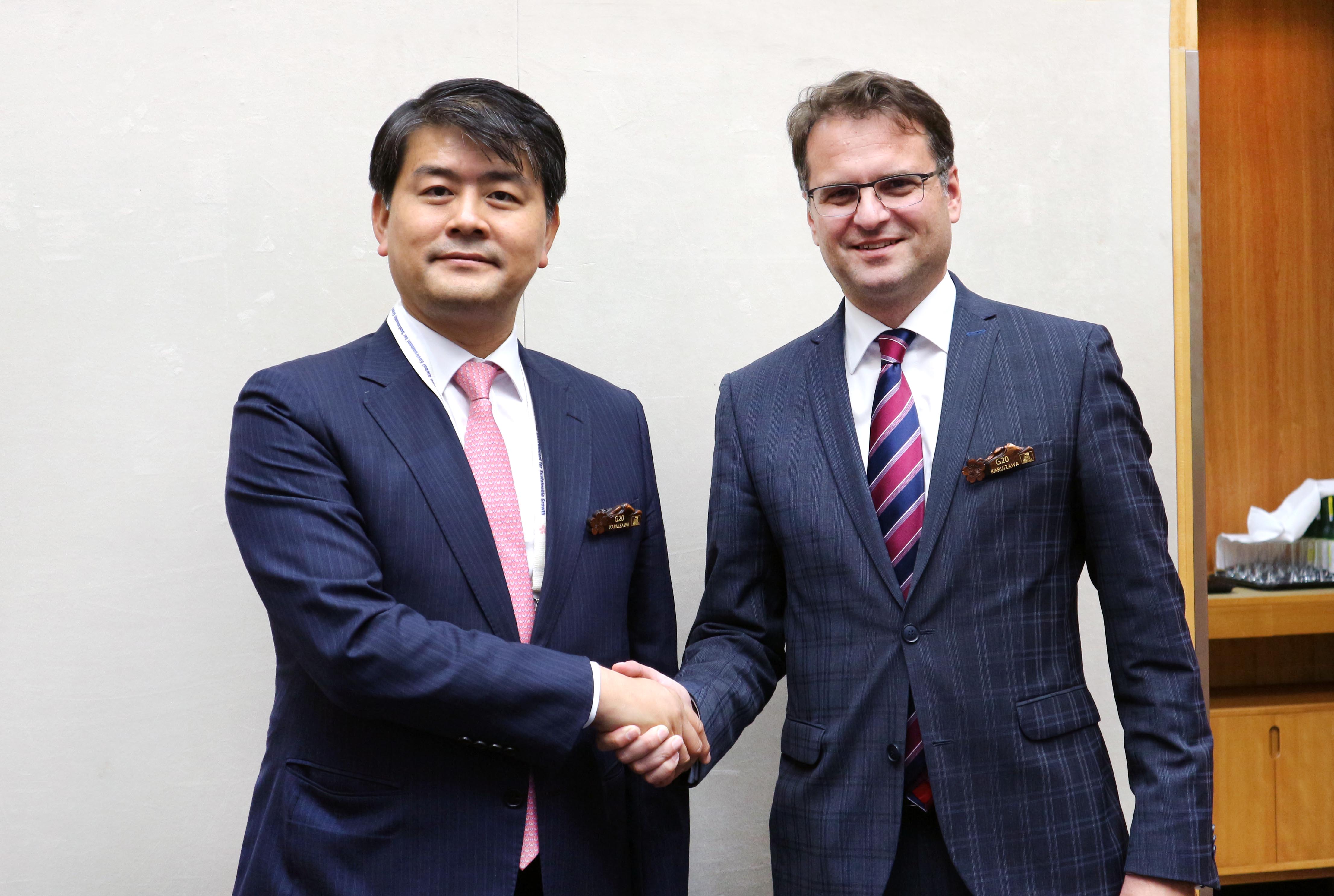 The Ministry of Trade, Industry and Energy’s Deputy Minister for Energy and Resources Joo Young-joon (left) met with Germany’s State Secretary at the Federal Ministry for Economic Affairs and Energy Andreas Feicht on June 15 in Nagano, Japan.On the occasion of the G20 Ministerial Meeting on Energy Transitions and Global Environment for Sustainable Growth, the two officials discussed energy transition and expansion of the hydrogen economy. date2019-06-17