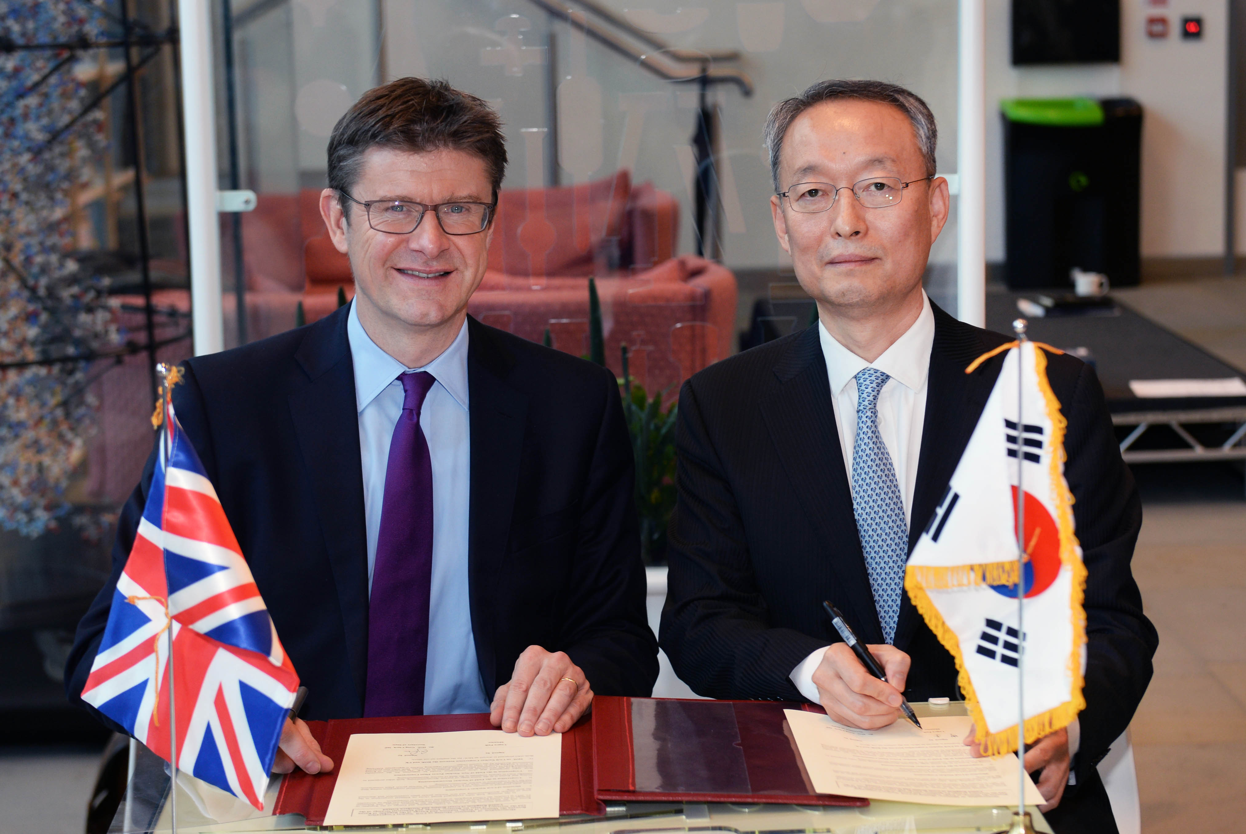 Trade, Industry and Energy Minister Paik Ungyu (right) posed for a photo with Secretary of State for Business, Energy and Industrial Strategy (BEIS) Greg Clark during his visit to London, United Kingdom, on November 27. During their meeting, Minister Paik and his counterpart Secretary Clark discussed ways of expanding cooperation in the nuclear power sector, ranging from construction and decommissioning of nuclear power plants, and promoting technological cooperation as part of efforts to date2017-11-27