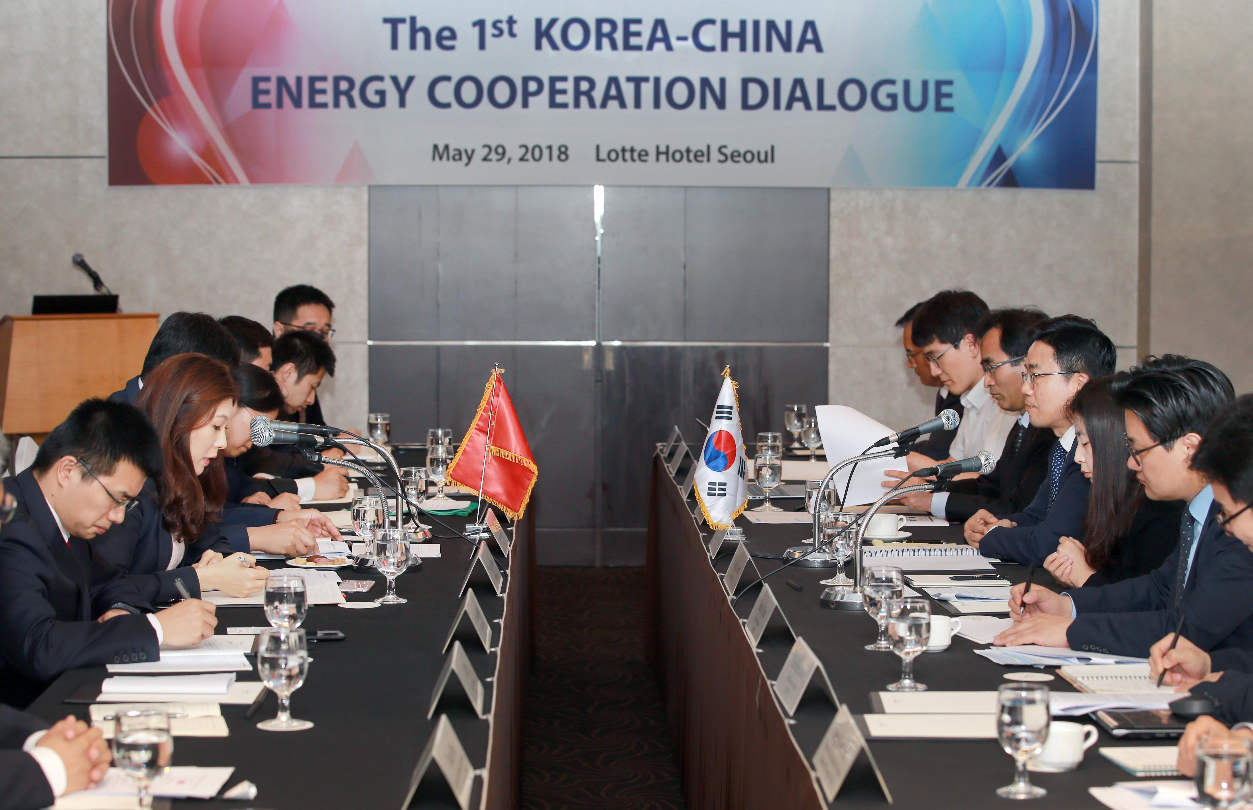 Director General for Energy Industry Policy Park Sung-taek from the Ministry of Trade, Industry and Energy (fourth from right) led the first Korea-China Energy Cooperation Dialogue, in Seoul on May 29. The meeting was attended by Korean and Chinese government officials and representatives from energy industries, including gas, utilities, new and renewable energy, and smart energy. During the meeting, participants finalized details for an MOU covering LNG cooperation and r date2018-05-29