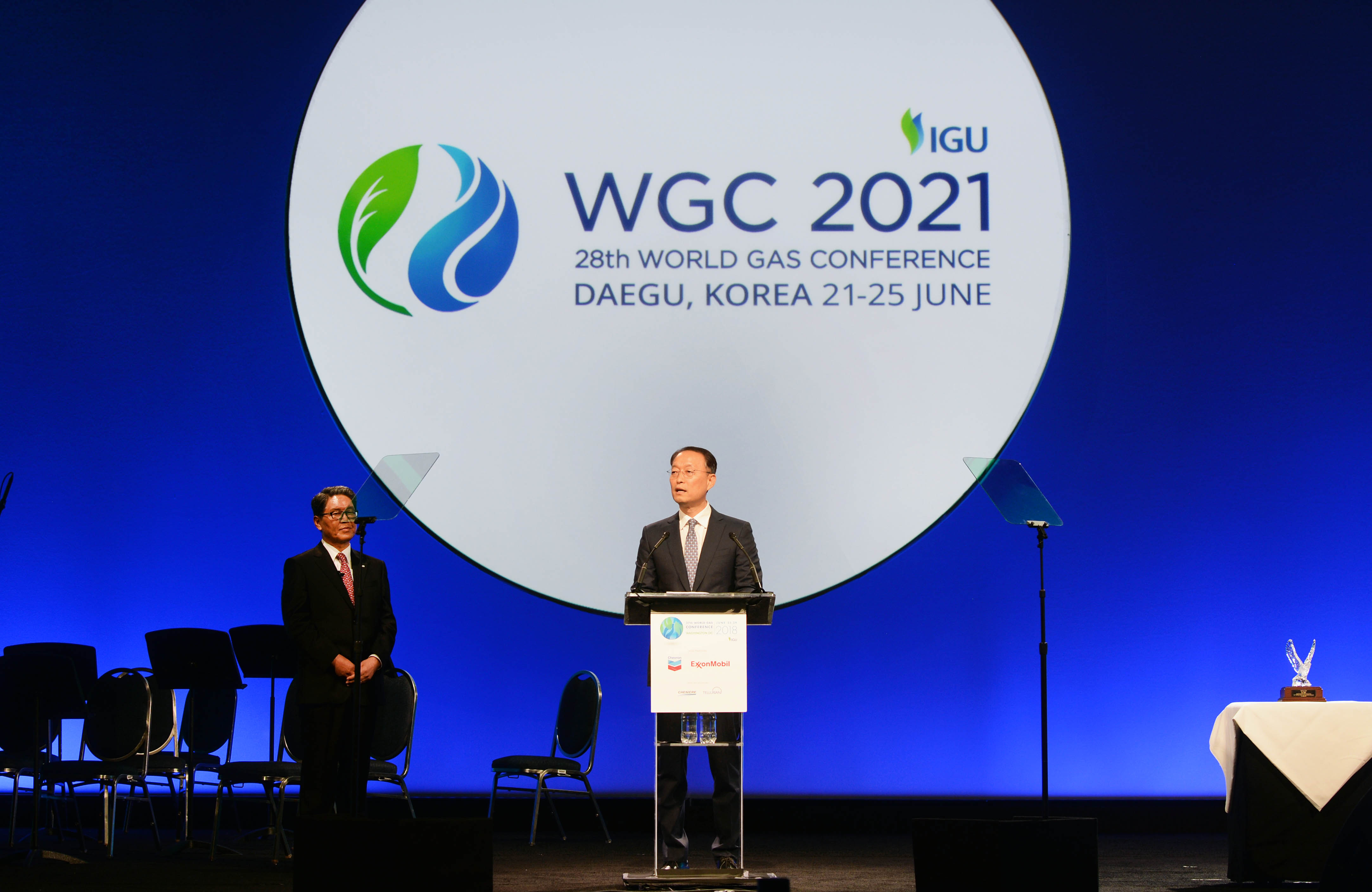 Minister of Trade, Industry and Energy Paik Ungyu attended the World Gas Conference (WGC) and spoke during the closing session, in Washington D.C. on June 29. In his key note speech at the conference, Minister Paik spoke about Korea's energy transition policies and predicted a growing dominance of gas in the future energy scene, along with renewable energy. The minister delivered his key note speech as the representative of Korea, the host country for the WGC in 2021, and as the e date2018-06-30