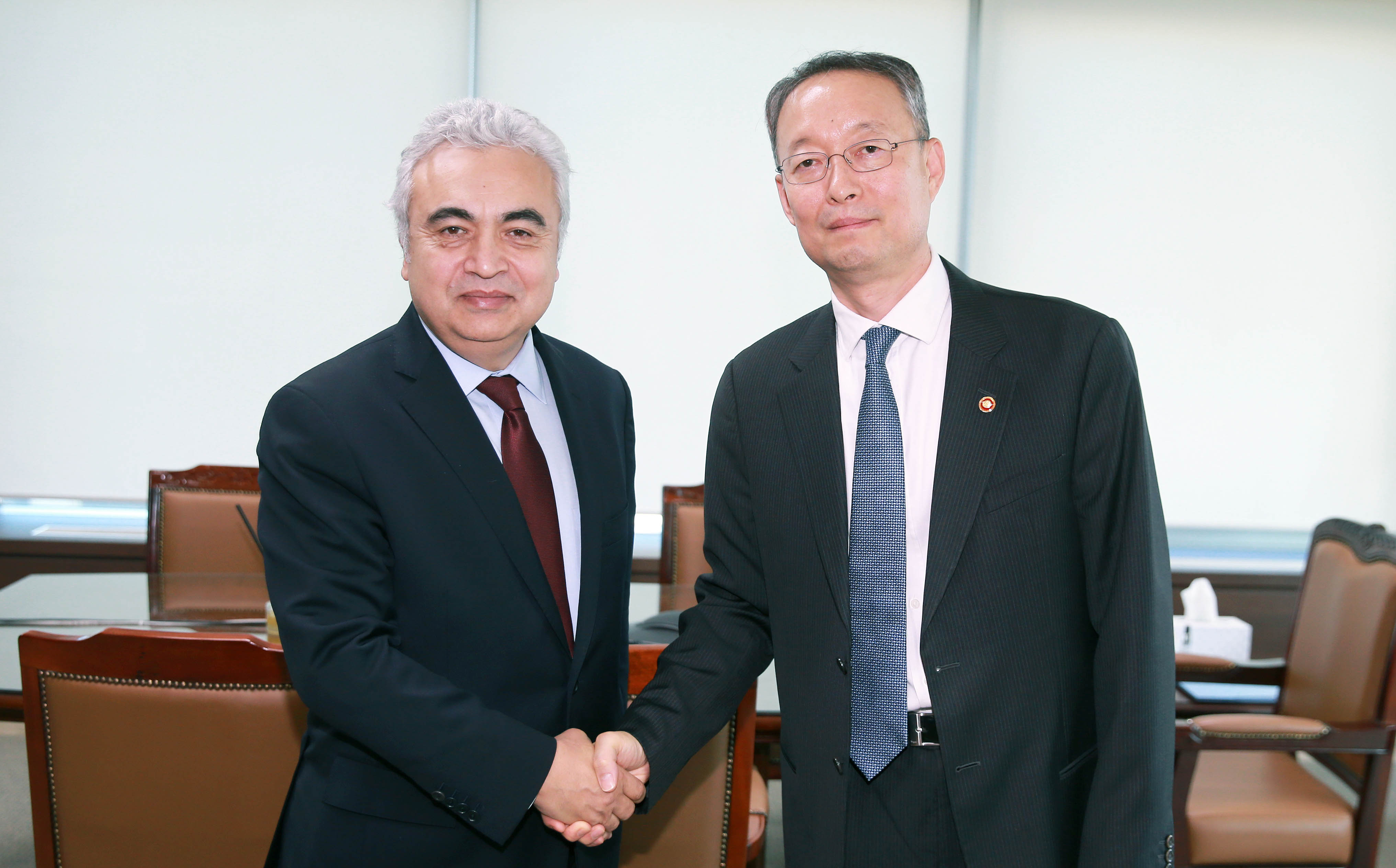 Trade, Industry and Energy Minister Paik (right) posed for a photo with International Energy Agency (IEA) Executive Director Fatih Birol during their meeting at the Korea Technology Center in Seoul on October 17. At the meeting, Minister Paik and Executive Director Birol exchanged their views on the global energy markets and changing market environment as well as the Korean government’s new energy policy directions. The IEA head visited Korea to attend the World Knowledge For date2017-10-17