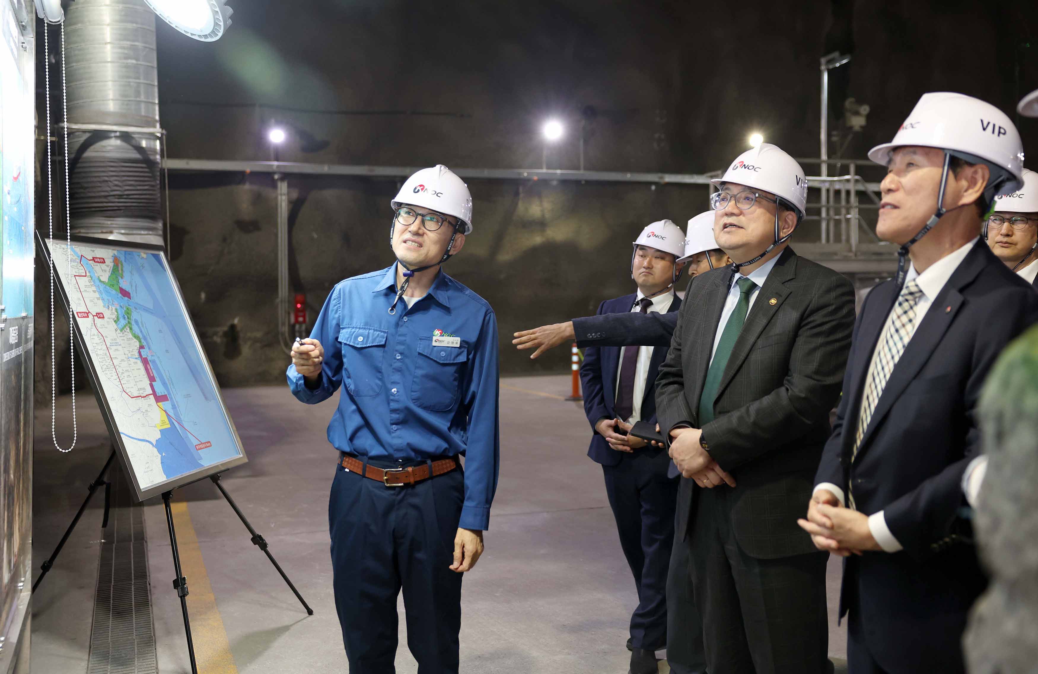 Trade, Industry and Energy Vice Minister Namho Choe visited the Ulsan petroleum storage facility on November 14 and received a briefing on petroleum storage operations and issues and encouraged employees. date2024-11-15