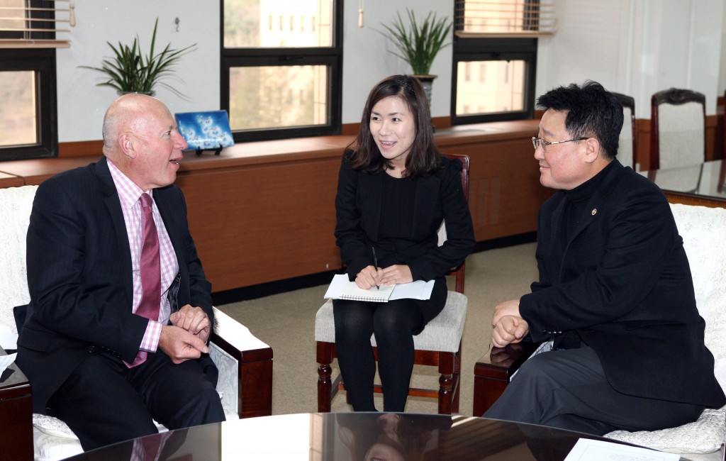 Vice Minister for Trade and Energy Cho Seok greets NSW Minister for Resources and Energy Chris Hartcher on November 30 at the Gwacheon Government Complex. The two officials discussed energy ties, with a particular emphasis on forging a closer investment partnership for resources development projects. date2012-12-11