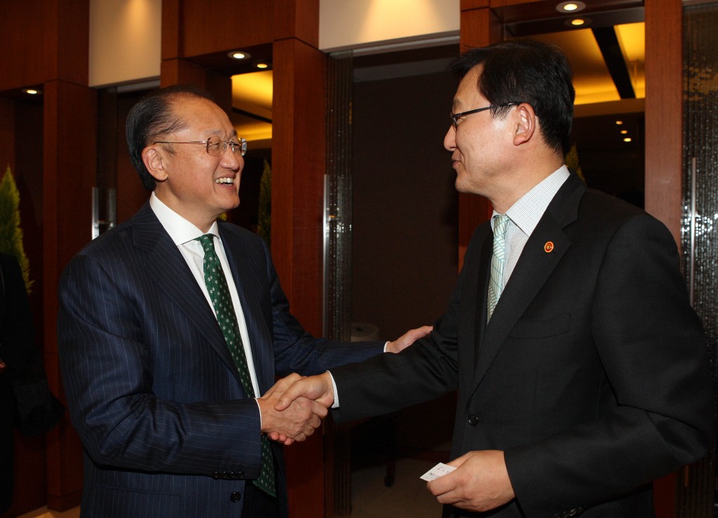 Minister Greets World Bank Leader Minister of Knowledge Economy Sukwoo HONG met with the President of World Bank Jim Yong Kim on October 15 in Seoul. The discussion focused on strengthening cooperation between MKE and the World Bank. date2012-10-25