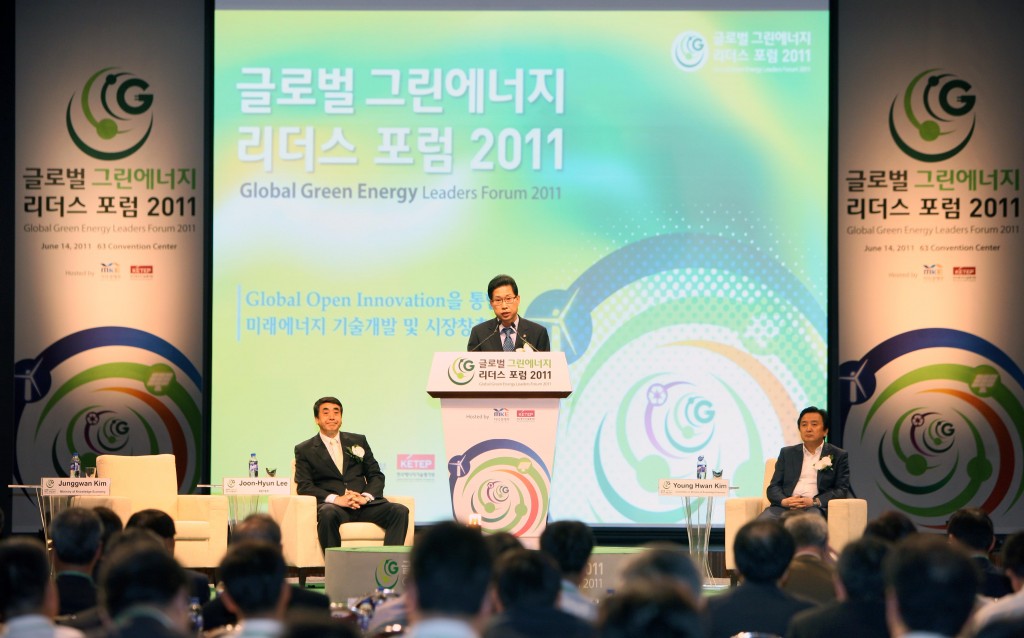 Vice Minister for Trade and Energy Kim Junggwan speaks at the Global Green Energy Leaders’ Forum on June 14 in Seoul. The forum drew almost 500 participants, including dignitaries from Japan, the United States and Denmark. date2011-06-21