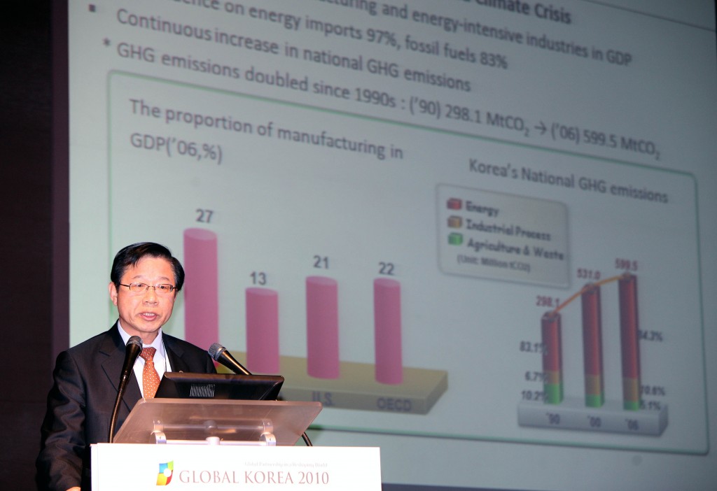 Vice Minister for Trade and Energy Kim Young Hak speaks at Global Korea 2010 on February 24 in Seoul. Prominent energy experts and government officials from overseas attended the meeting to forge partnerships on green growth. date2010-03-02