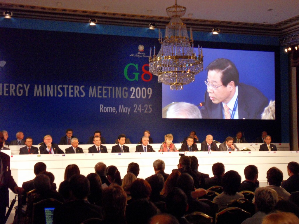 Vice Minister for Trade and Energy Kim Young Hak (pictured on screen) addresses world energy leaders at the G8 Energy Ministers Meeting, which took place in Rome from May 24 to 25. Discussions centered on climate change and energy security. date2009-06-03