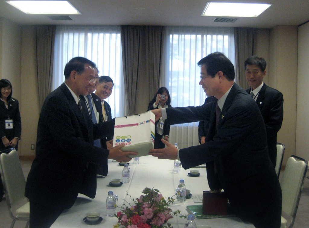 Vice Minister for Trade and Energy Kim Young Hak greets Thai Minister of Energy Wannarat Charnnukun (left) in Tokyo on April 26. Vice Minister Kim met with the Thai Minister during a visit to Japan for the third Asian Ministerial Energy Roundtable Meeting, and also met separately with Saudi Petroleum and Mineral Resources Minister Ali Al-Naimi and Omani Oil Minister Mohammed Al Rumhy. date2009-04-28