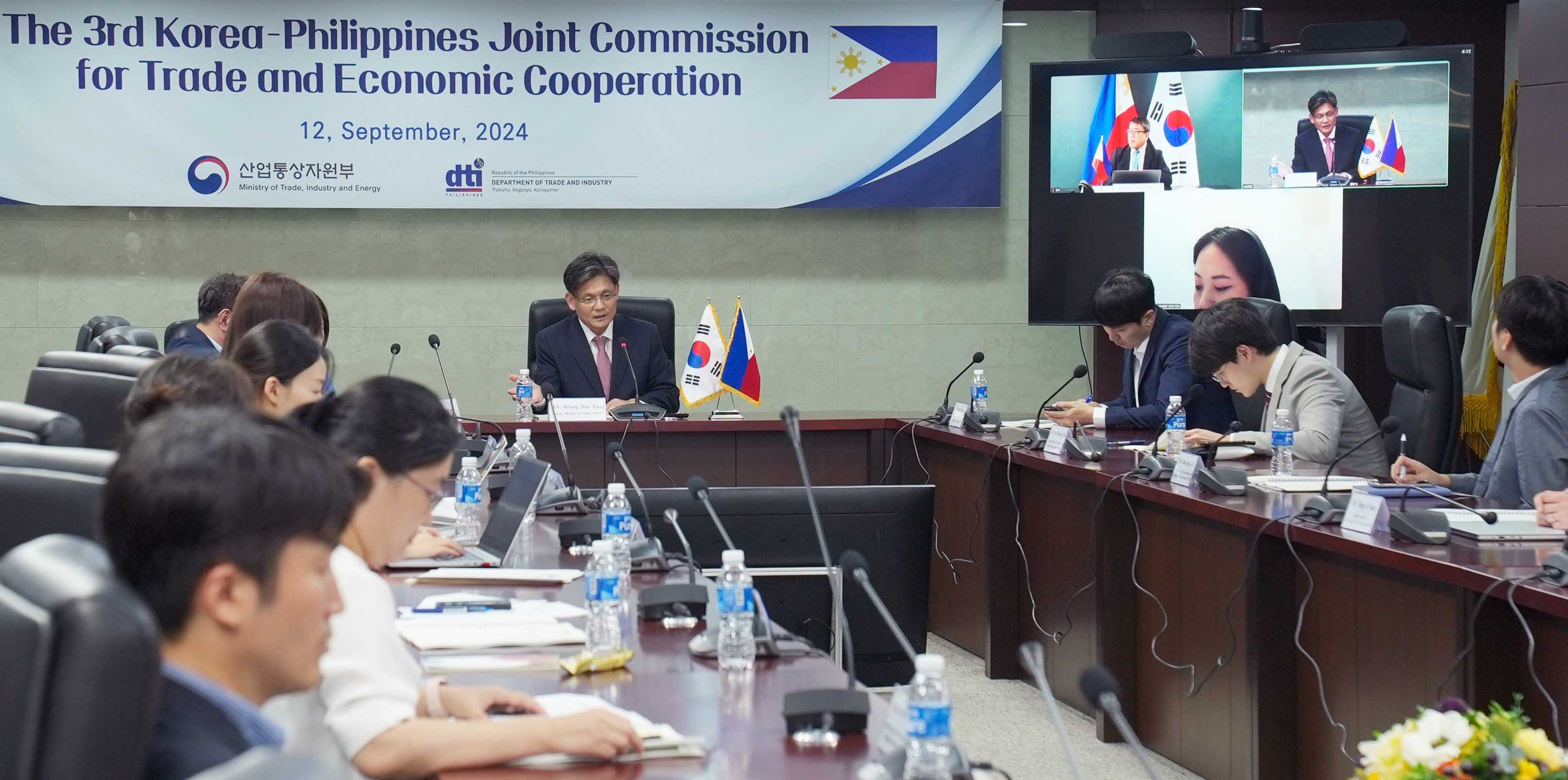 Korea’s Deputy Minister for Trade Yang Byeong-nae and the Philippines’ Assistant Secretary for Industry Development and Trade Policy Allan B. Gepty led their respective delegations in the 3rd Korea-Philippines Joint Commission for Trade and Economic Cooperation meeting via videoconference on September 12 to discuss the Korea-Philippines Free Trade Agreement (FTA) and measures for cooperation in areas like shipbuilding and eco-friendly vehicles. date2024-09-13