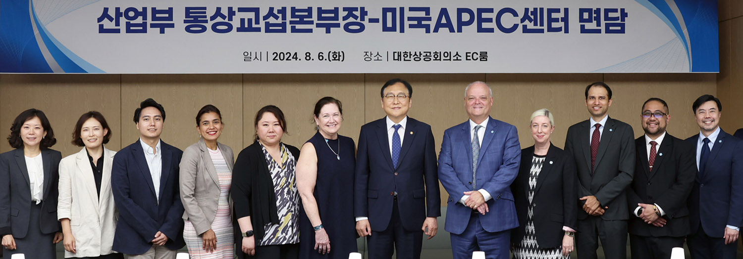 Minister for Trade Inkyo Cheong met with Monica H. Whaley, president of the U.S.’ National Center for Asia-Pacific Economic Cooperation (NCAPEC), and other NCAPEC members from Google, Airbnb, and Amazon on August 6 in Seoul on the margin of their visit to Korea. At this meeting, Minister Cheong shared Korea’s preparations for hosting the Asia-Pacific Economic Cooperation (APEC) Economic leaders’ meeting held in 2025, as well as Korea’s plans and major deliverables such as the cooperation of sustainable supply chains and an establishment of artificial intelligence (AI)-based cooperative system within the APEC region. In addition, he asked NCAPEC to share its knowhow of how it hosted a series of business events such as APEC Business Advisory Council (ABAC) Dialogue with Economic Leaders and the APEC CEO Summit with the Korea Chamber of Commerce and Industry (KCCI) which will host the business events next year. In turn, NCAPEC representatives proposed APEC-level cooperation in establishing digital trade principles and restoring supply chain resilience. Minister Cheong highlighted Korea’s aim to produce tangible outcomes during Korea’s APEC chairmanship in 2025 such as strengthening intraregional business networks through various events for public-private exchanges, and requested NCAPEC to prepare meaningful business events in cooperation with KCCI. date2024-08-06