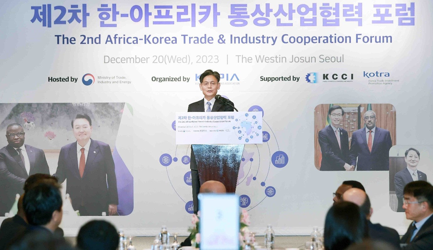 Deputy Trade Minister Yang Byeong-nae at the Ministry of Trade, Industry and Energy attended the second Korea-Africa Trade and Industry Cooperation Forum on December 20 at the Westin Josun Hotel Seoul, attended by approximately 110 persons, consisting of the ambassadors and delegations of 17 African countries, as well as business leaders interested in entering the African market, and experts in relevant fields, including Morrocco's Ambassador to Korea Chafik Rachadi and Korea Plant Industri date2023-12-21