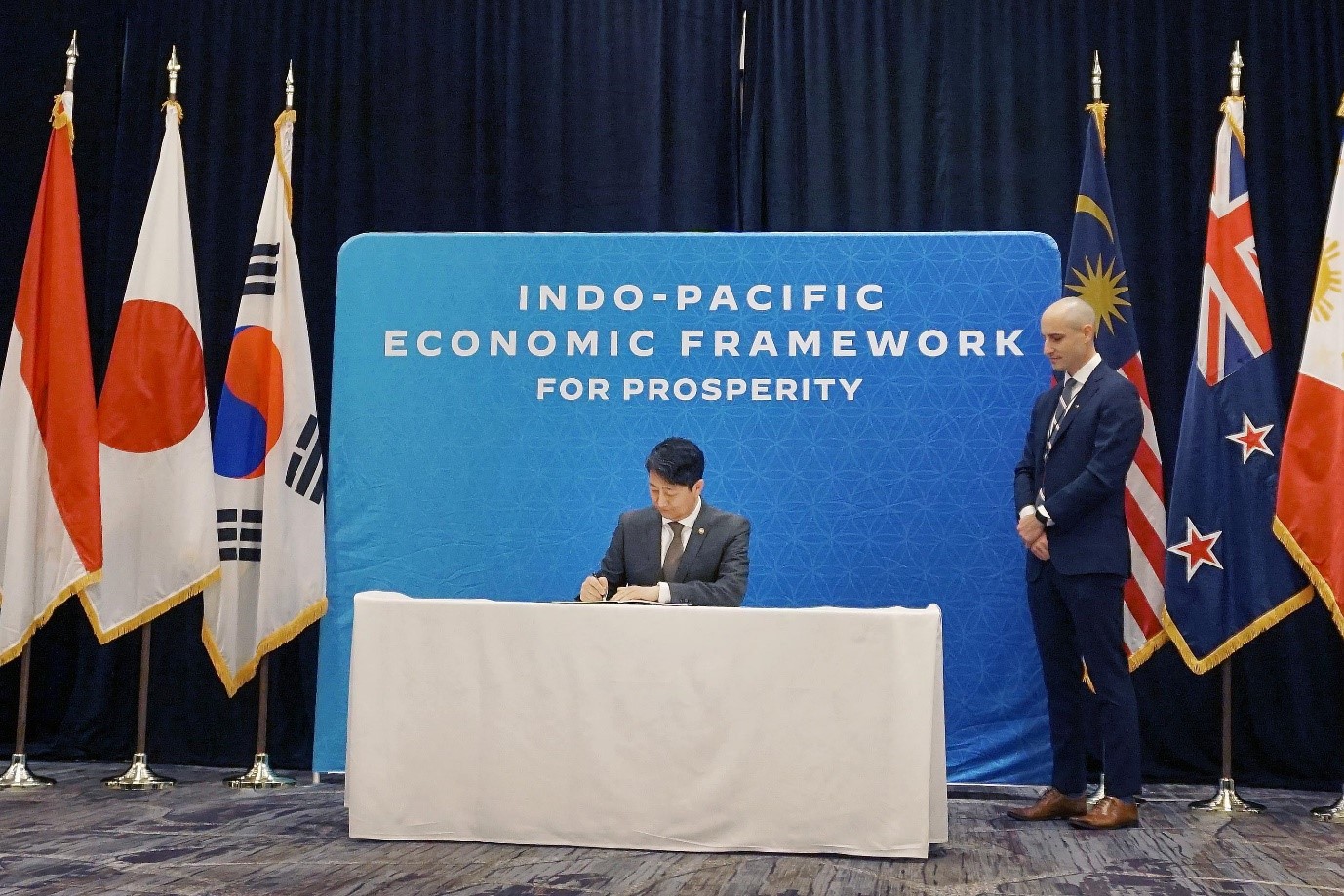 Minister for Trade Dukgeun Ahn attended the Indo-Pacific Economic Framework for Prosperity (IPEF) Supply Chain Agreement signing ceremony on November 14 in San Francisco and signed the Supply Chain Agreement (Pillar II), which was concluded in May this year. date2023-11-20
