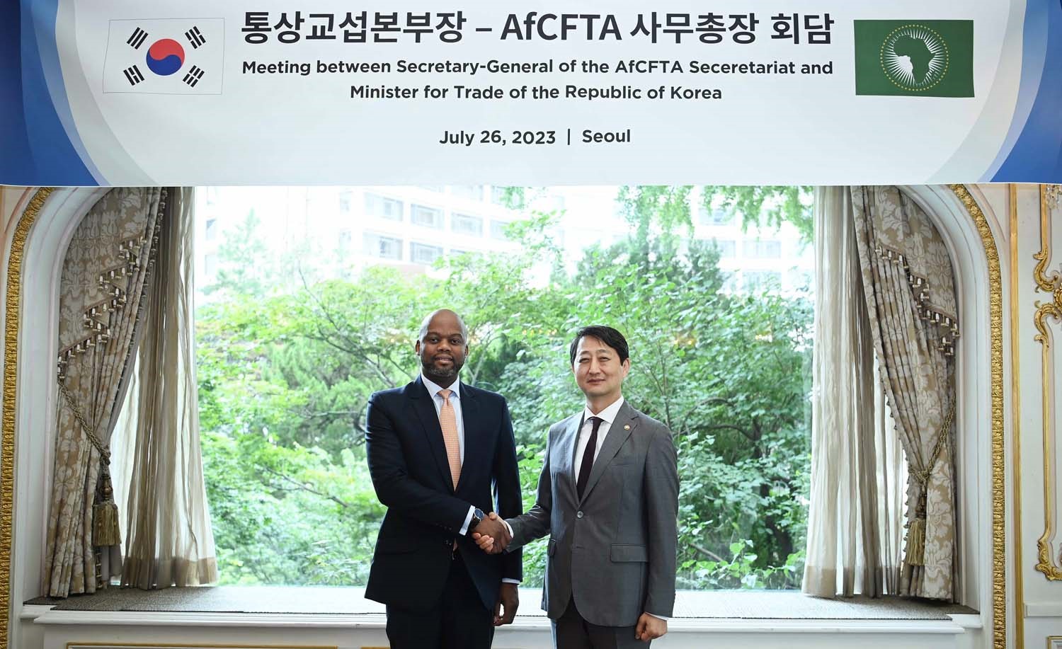 The Republic of Korea’s Minister for Trade Dukgeun Ahn met with African Continental Free Trade Area (AfCFTA) Secretariat Secretary-General Wamkele Mene on July 26 during the latter’s visit to Seoul and discussed measures to expand Korea-Africa economic cooperation. date2023-07-28