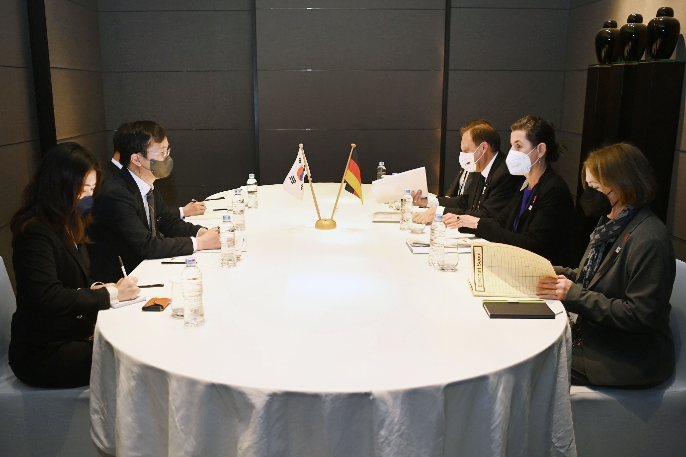 The Trade, Industry and Energy Ministry’s Director-General for International Trade Policy Yoon Chang-hyun led the Korean delegation for Korea-Germany talks on economic affairs on November 4 at Grand Hyatt Seoul and discussed concerns and countermeasures regarding the U.S.’ Inflation Reduction Act (IRA) and shared Korea’s investment environment and bilateral cooperation with his German counterpart Sabine Hepperle, Head of the Directorate-General at the Federal Ministry for Econo date2022-11-07