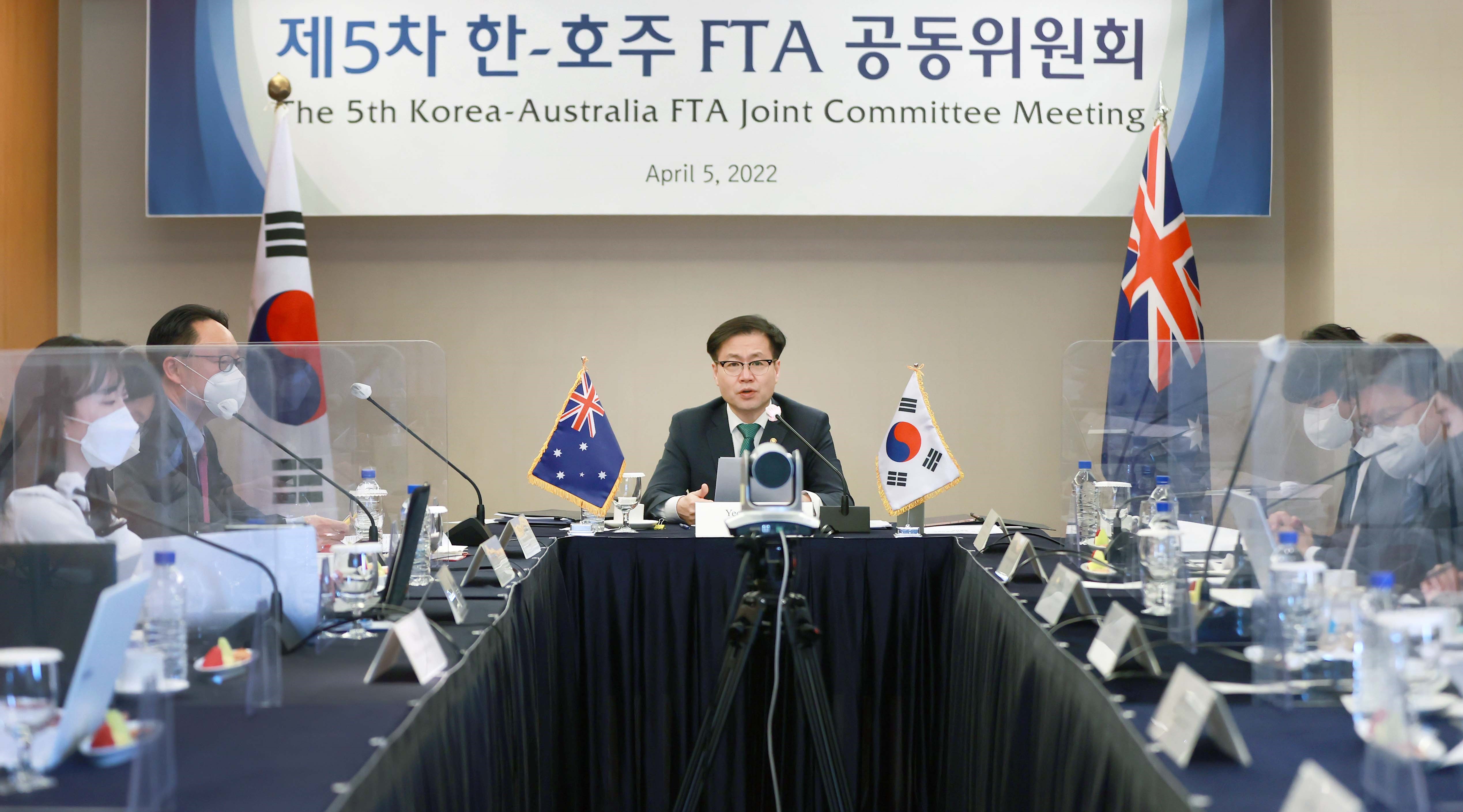 Trade Minister Yeo Han-koo held the 5th Korea-Australia FTA Joint Committee Meeting via teleconference on April 5 with Australia’s Minister for Trade, Tourism and Investment Dan Tehan to discuss the Indo-Pacific Economic Framework, Korea-Australia FTA implementation progress, and major trade issues. The two trade chiefs covered key trade agenda items, including the Indo-Pacific Economic Framework, Korea-Australia FTA implementation progress, digital cooperation and regulatio date2022-04-07