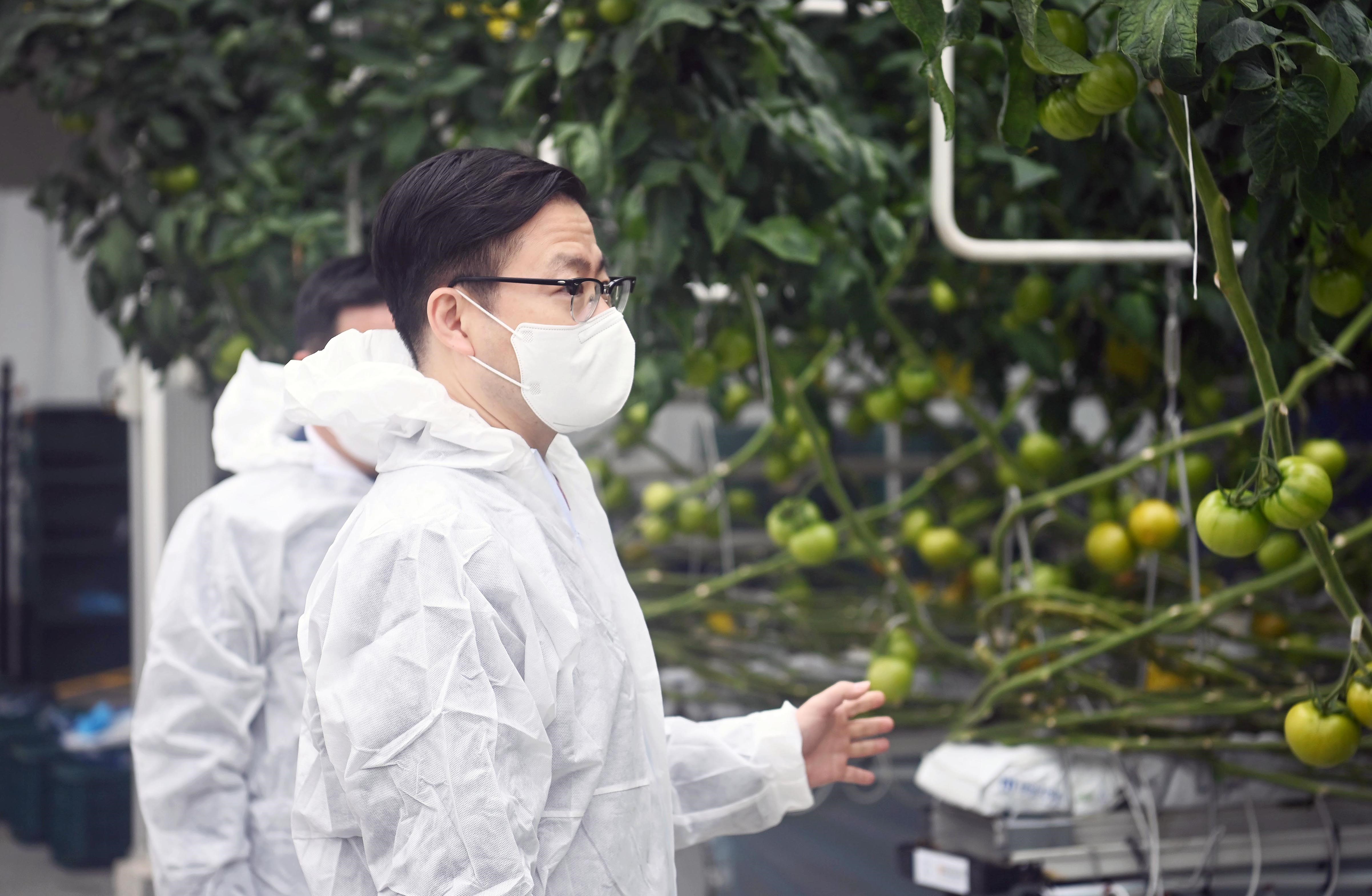Trade Minister Yeo Han-koo visited the Korean-style data-driven smart farm test complex and exports-focused cultivation site located in Wonbuk-myeon, Taean-gun, Chungcheongnam-do on April 13 to check the progress of domestic support projects pushed in response to Free Trade Agreements. Operated by Wonbuk-myeon Agricultural Cooperative and contractor company Culti Labs, the data-driven smart farm is powered by using the thermal discharge of nearby Taean Thermal Power Station to grow its date2022-04-14