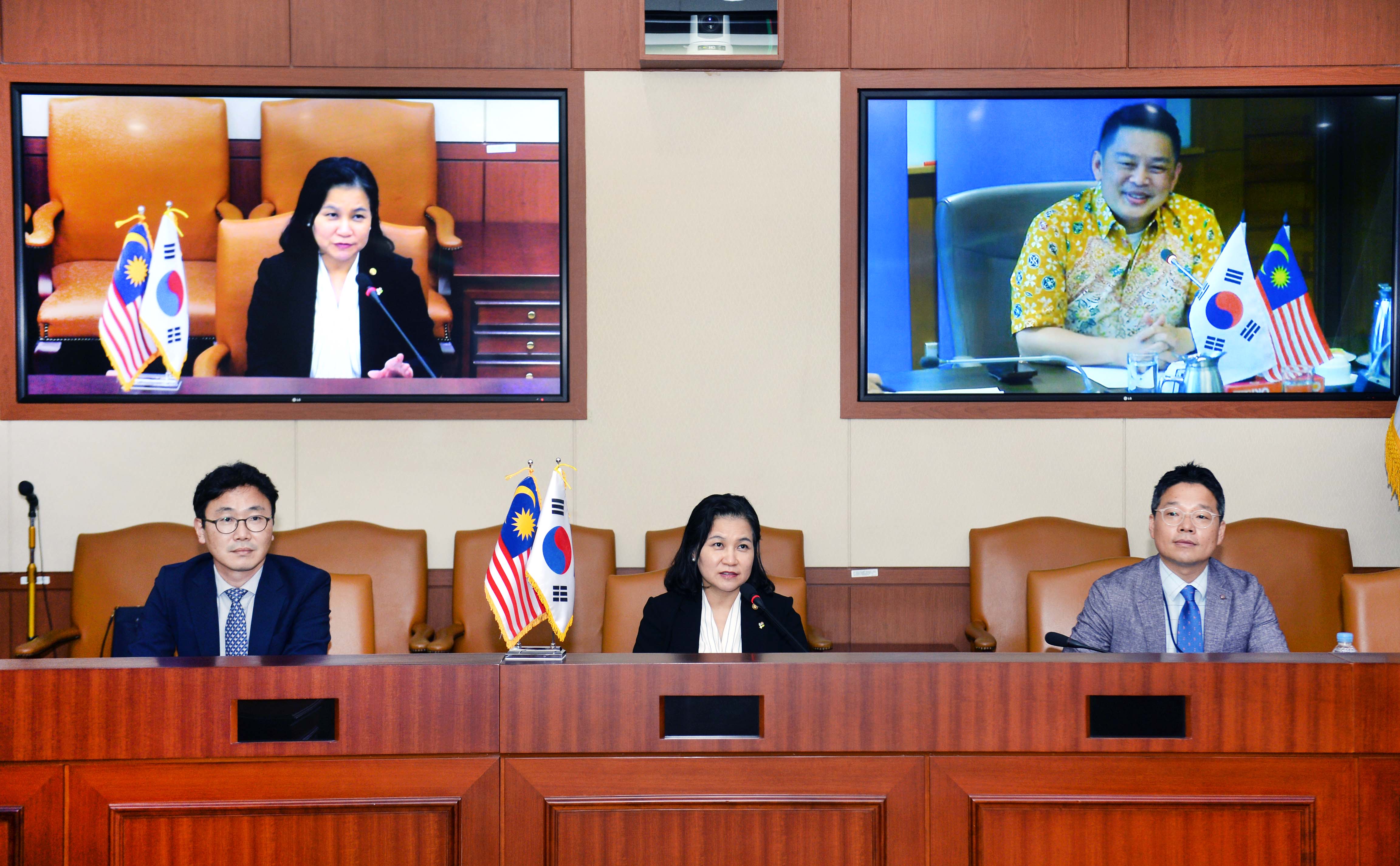 Trade Minister Yoo Myung-hee (center) had a video conference with Malaysian International Trade and Industry Minister Darell Leiking in the Government Complex Gwacheon to officially announce the launch of Korea-Malaysia Free Trade Agreement negotiations on June 27.The two sides agreed to work towards signing the deal by this November when the Korea-Association of Southeast Asian Nations (ASEAN) special summit is scheduled to take place in Busan, Korea’s largest port city. date2019-06-28