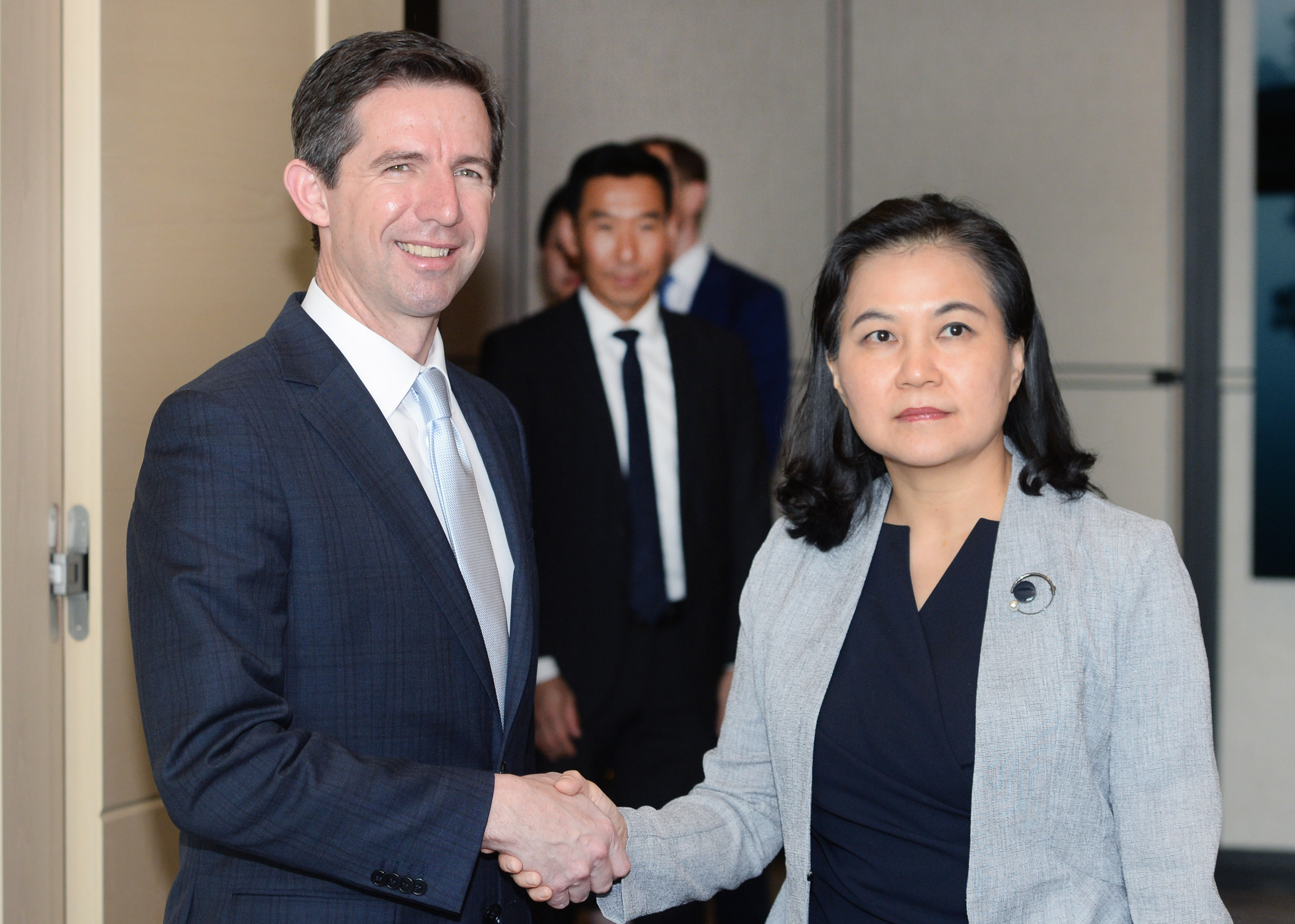 Trade Minister Yoo Myung-hee (right) had a meeting with Australia’s Minister for Trade, Tourism and Investment Simon Birmingham in Seoul on Aug 5. The Ministers explored ways to boost trade and investment between the two countries and expand cooperation in the energy sector. date2019-08-06