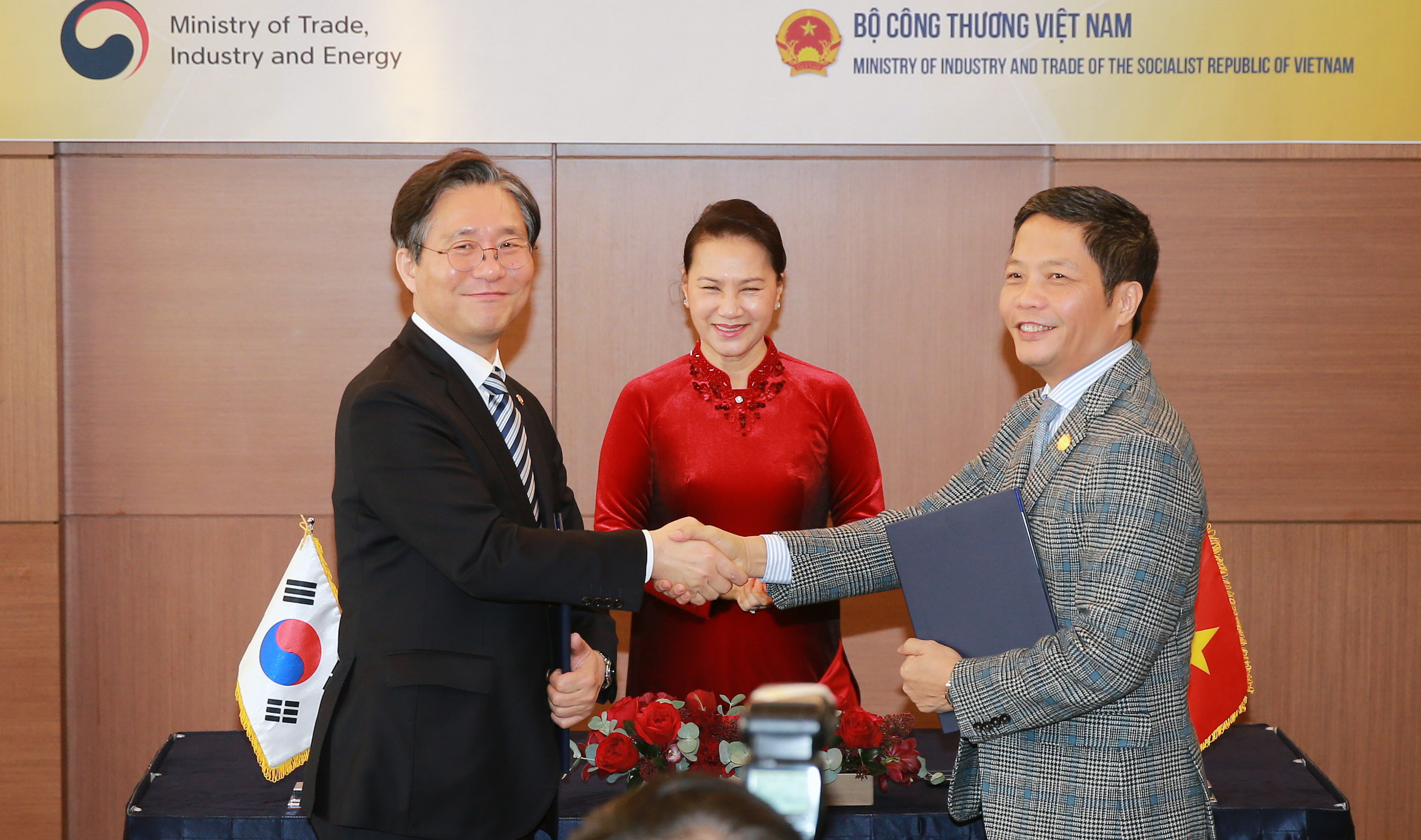 Trade, Industry and Energy Minister Sung Yunmo (left) and Vietnam’s Industry and Trade Minister Tran Tuan Anh signed an action plan to achieve bilateral trade of USD 100 billion by 2020 in Seoul on December 6.The action plan has been developed to step up cooperation between the two countries on various fields, including retail, automobiles, and materials and components. date2018-12-06