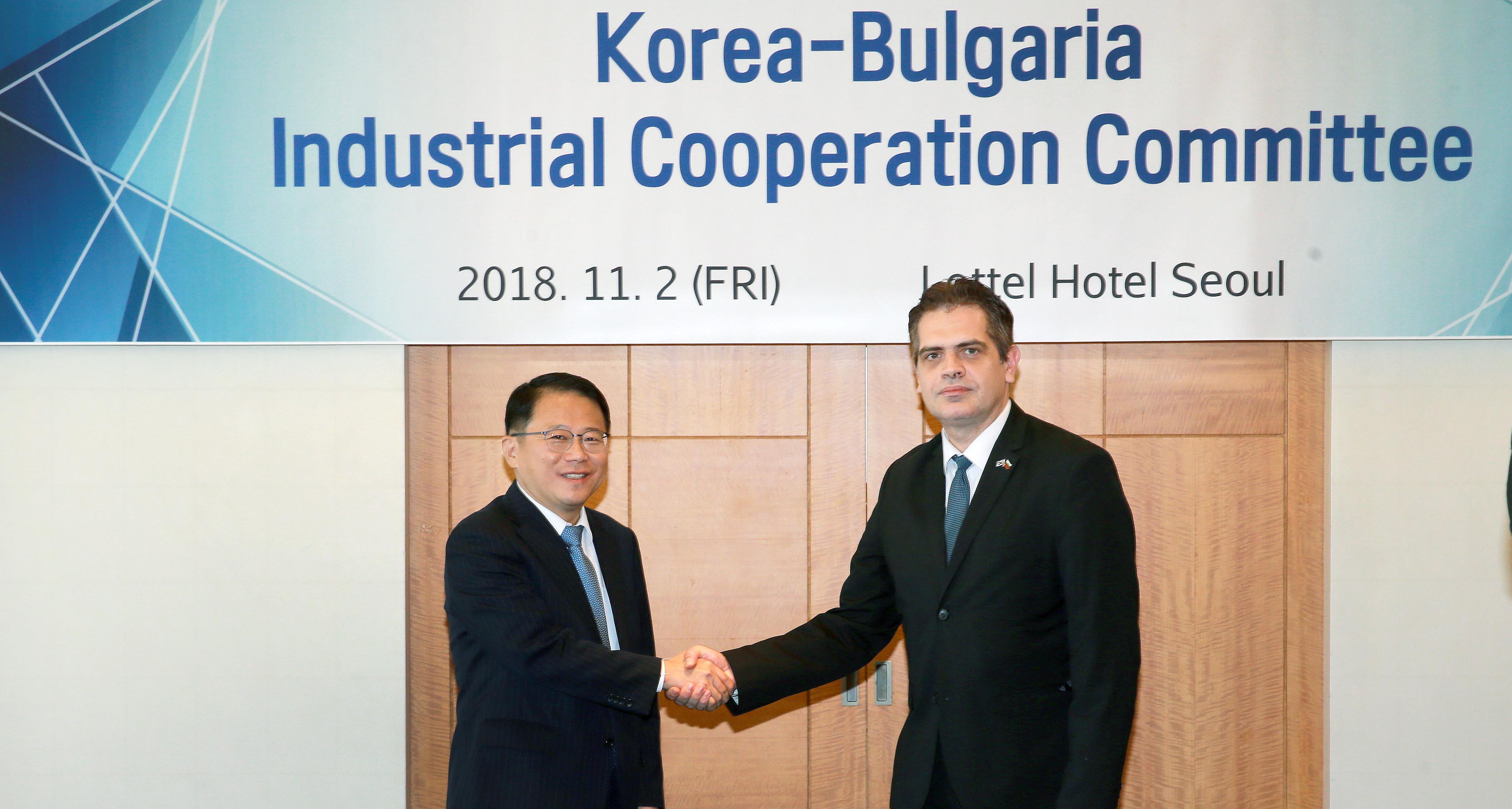 The Ministry of Trade, Industry and Energy held the second Korea-Bulgaria Industrial Cooperation Committee with the Korea Trade Commission’s Standing Commissioner Kang Myung-soo (left) and Bulgarian Deputy Minister of Economy Lachezar Borisov leading the talks in Seoul on November 2.The two sides discussed efforts for cooperation in economy, trade, and energy. They also talked about enhancing collaboration between private sectors and providing more support to Korean businesses in Bulgaria. date2018-11-02