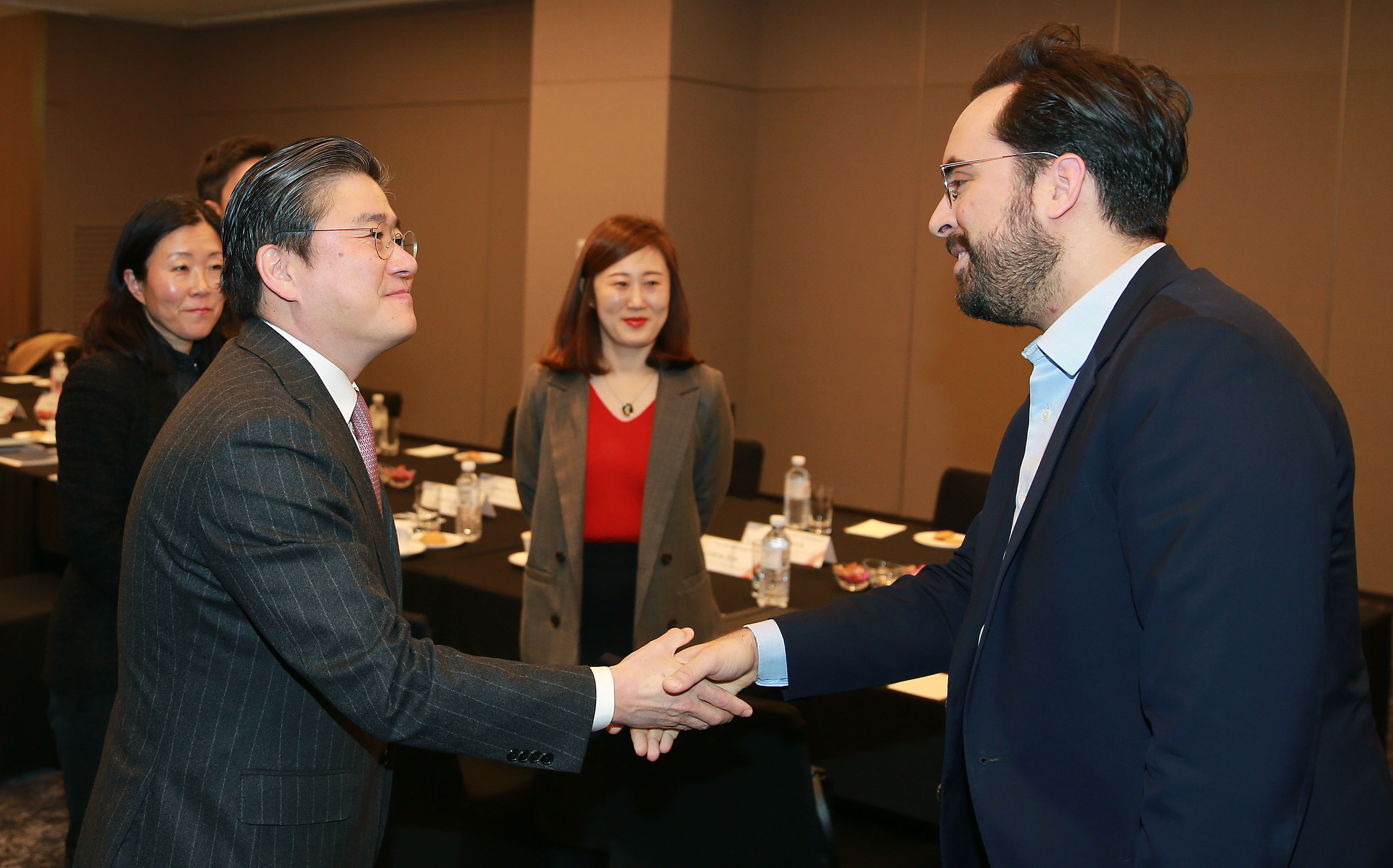 Trade, Industry and Energy Vice Minister Cheong Seung-il (left) met with France’s Minister of State for the Digital Sector Mounir Mahjoubi to discuss industrial and economic ties between Korea and France in Seoul on February 19.At the meeting, Vice Minister Cheong talked about bolstering bilateral cooperation in new industries, including their trade and investment, and in the hydrogen economy that would see more hydrogen-powered vehicles on the road. date2019-02-19