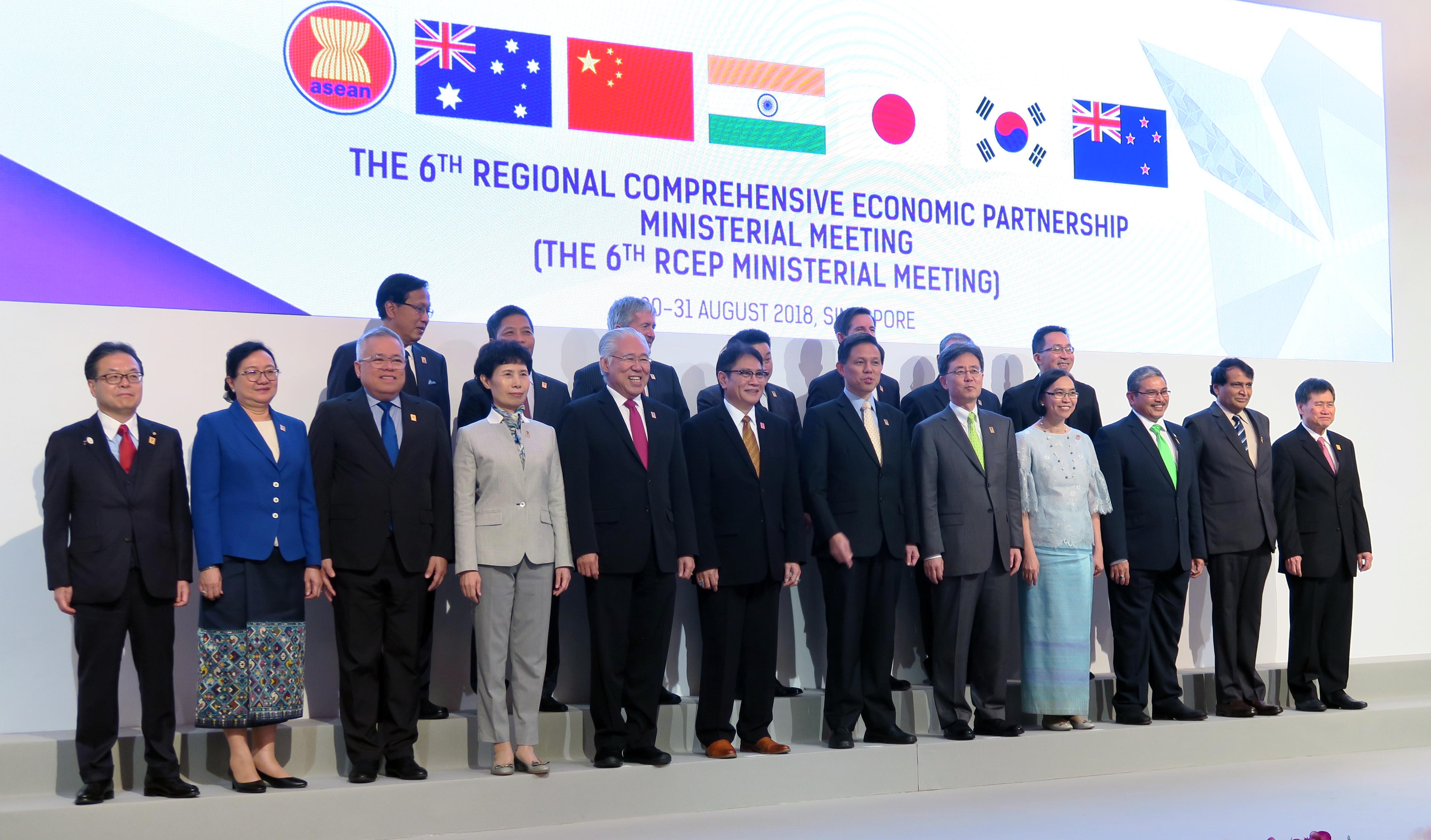 Trade Minister Kim Hyun-chong (fifth from right in the first row) attended the sixth Regional Comprehensive Economic Partnership (RCEP) ministerial meeting held in Singapore from August 30 to 31.During the meeting, Trade Minister Kim and top trade officials from 16 countries including China, Japan, and Association of Southeast Asian Nations (ASEAN) member states emphasized the importance of RCEP amid growing uncertainties in the global trade environment and reaffirmed their commitment to reach a date2018-08-31
